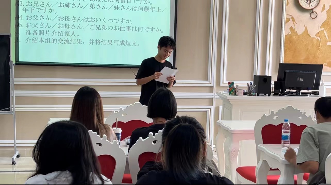 首先,由23应用日语2班的潘翔、赖书棋、王良奥、王俊杰、卢闻雪、李璐同学用日语分别向大家介绍了他们的家人。他们的家庭背景和生活环境各不相同,但他们对家人的爱和关心是一样的。通过他们的描述,我们可以看到家庭在学生生活中的重要性。