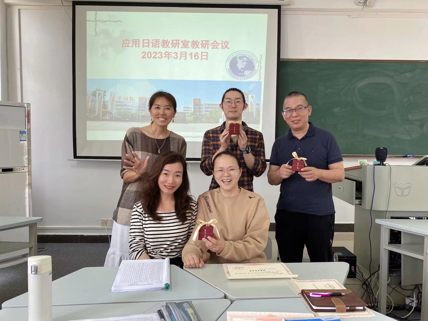 会议结束之后,全体专职日语教师表示了对陈小苗老师的祝福。