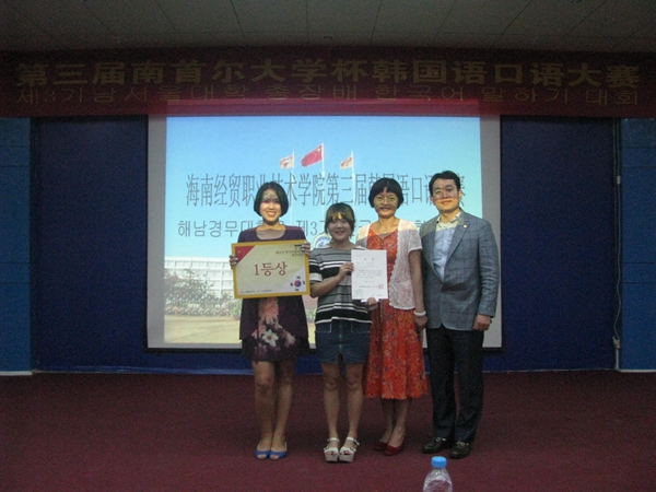 经过激烈角逐,国际教育学院韩语班张梦梦同学获得比赛一等奖,她还将得到南首尔大学1000元人民币奖学金。二、三等奖获得者也将得到南首尔大学的奖学金。