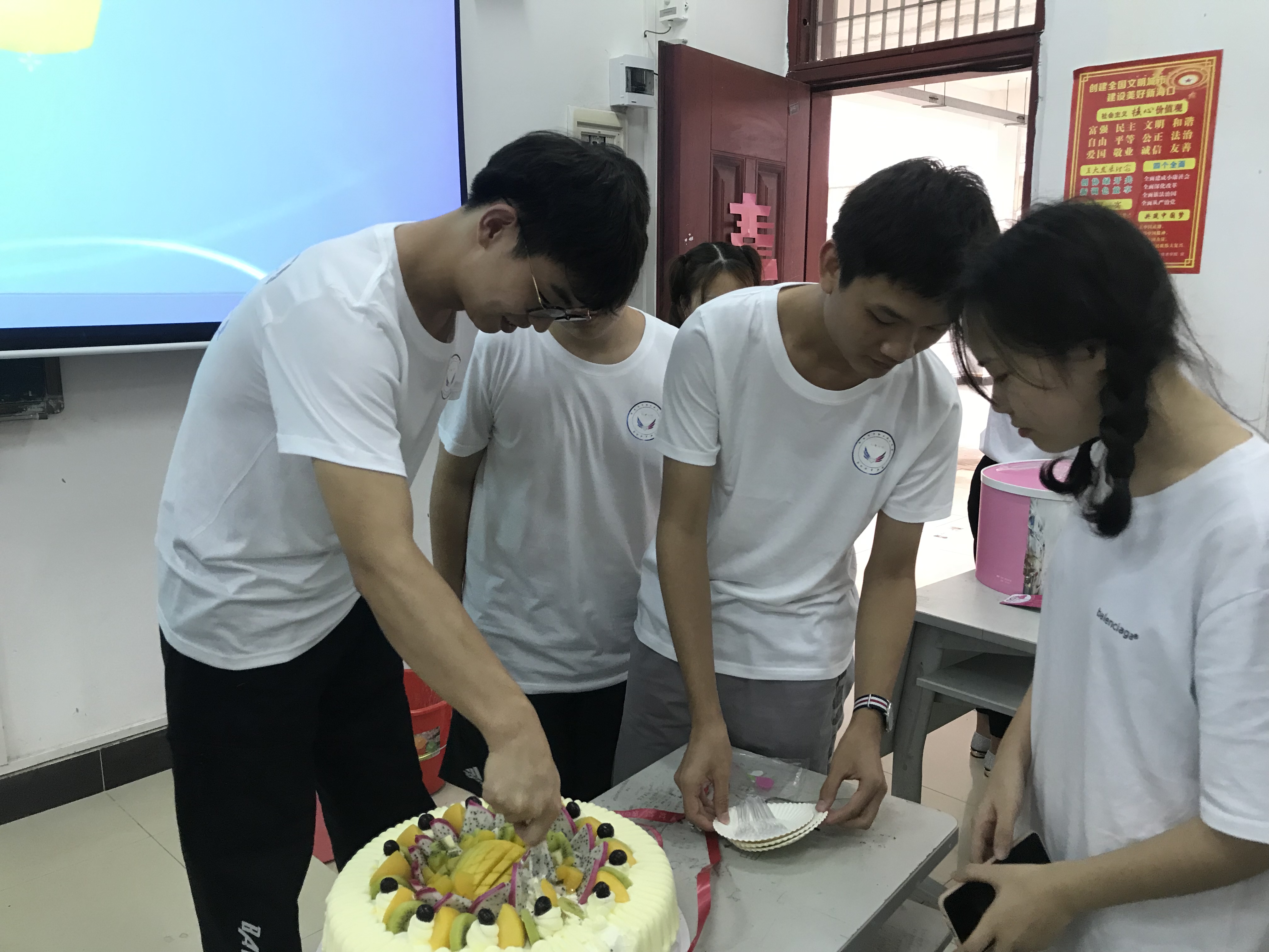 4月29日下午,18级应用韩语专业开展第三次集体生日会,本次集体生日会由王斯睿、梁昌丽、符良超三位班委成员负责策划、采购、安排等各个环节事项,同学们欢声笑语,共唱《生日快乐》,并开展了猜歌名、“我画你猜”等各项趣味活动。