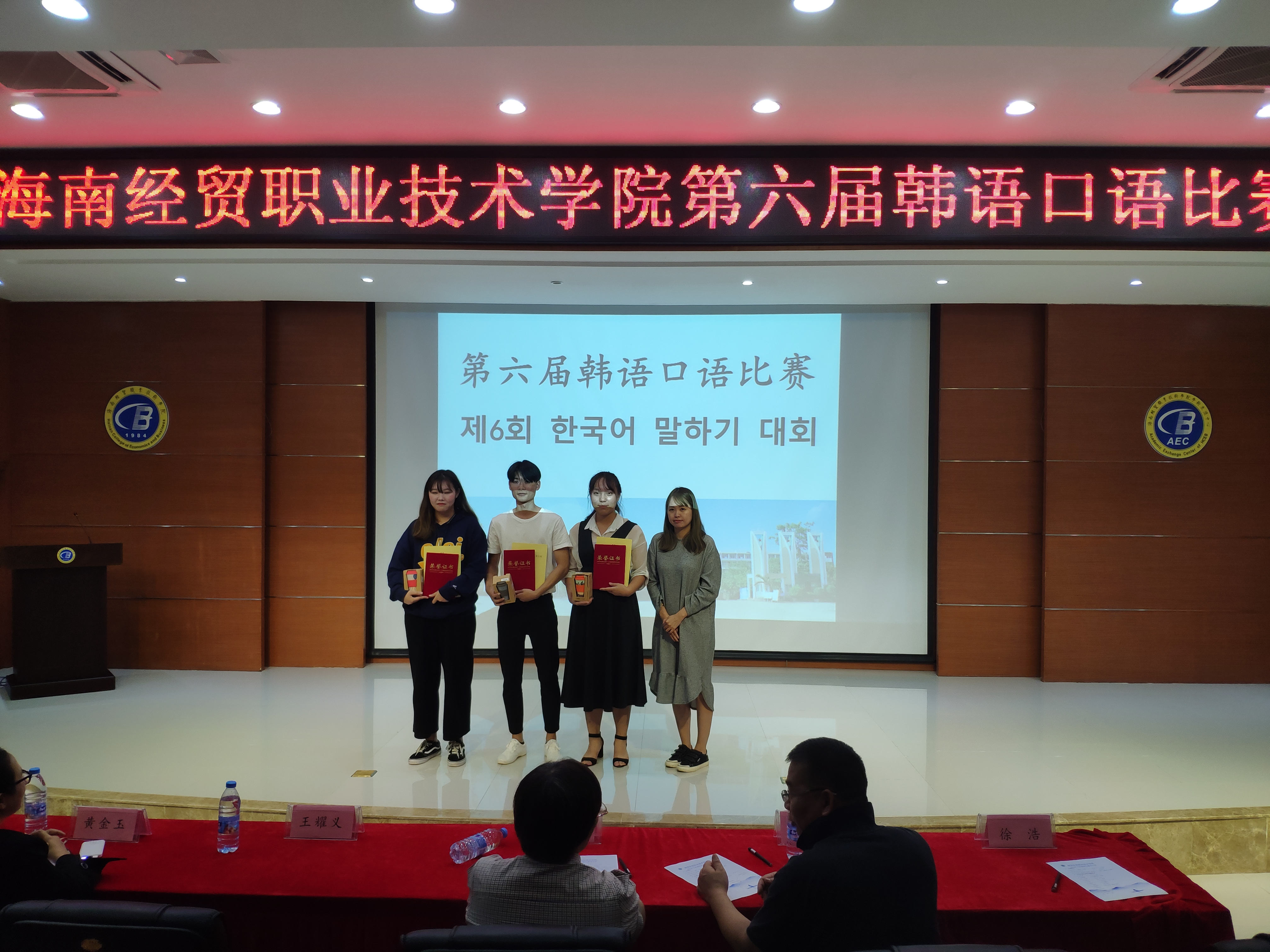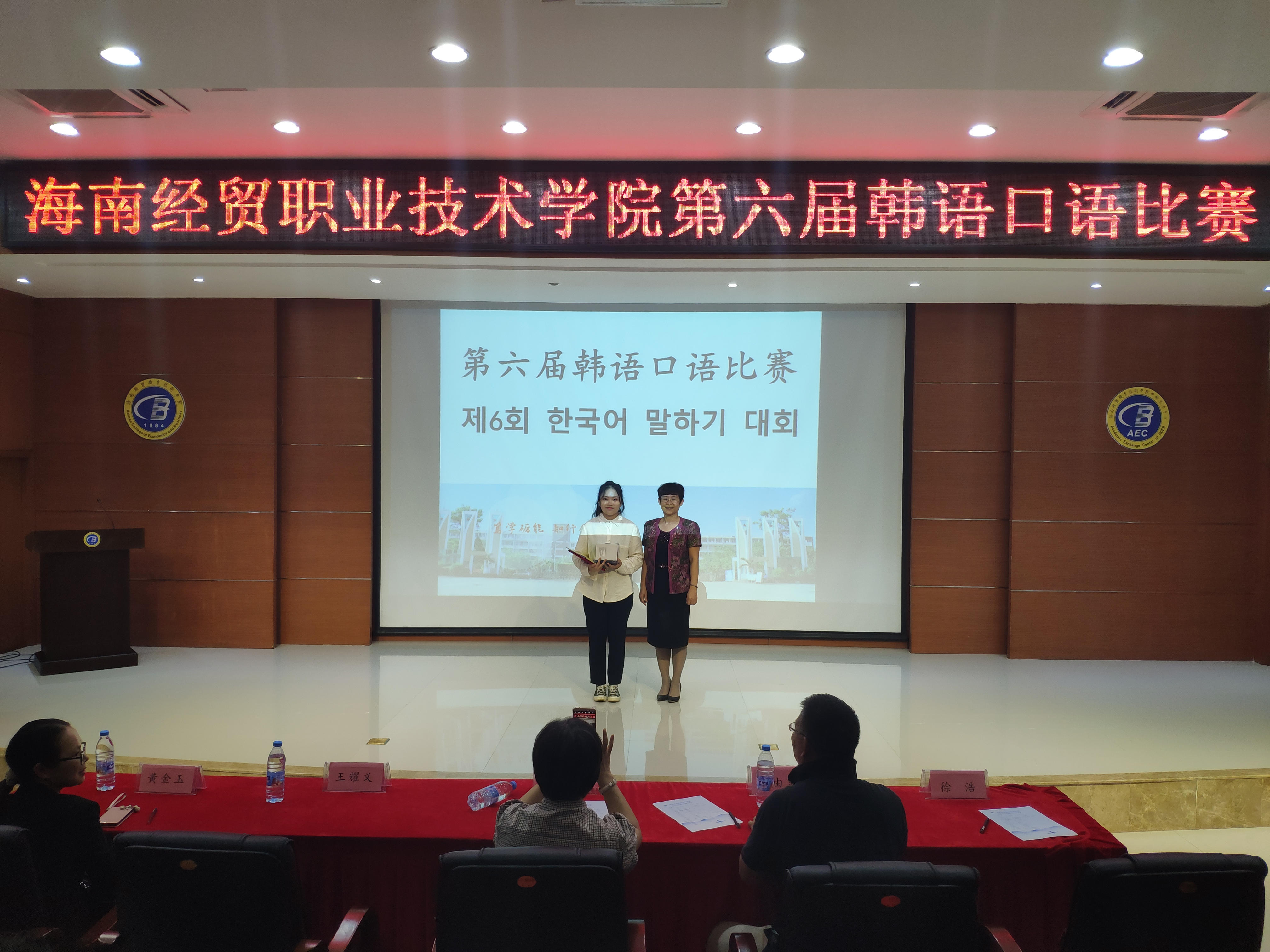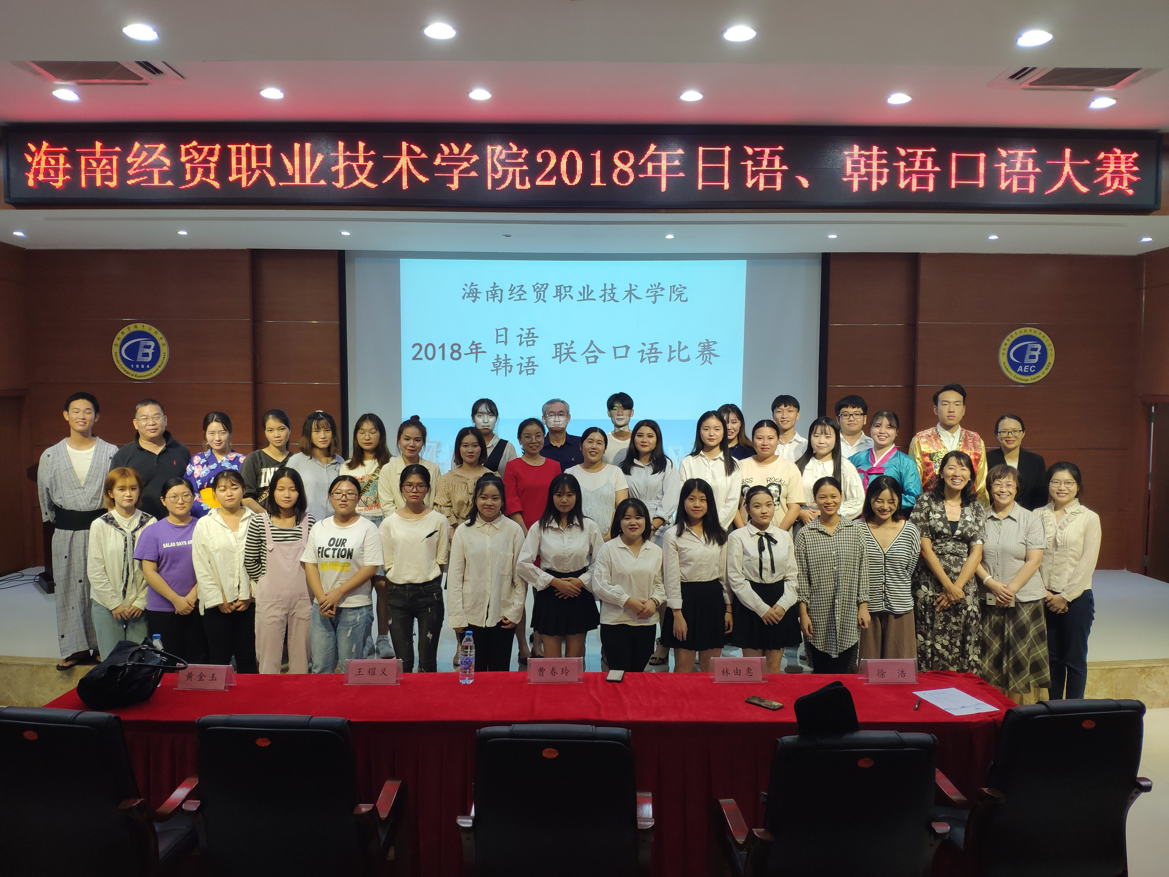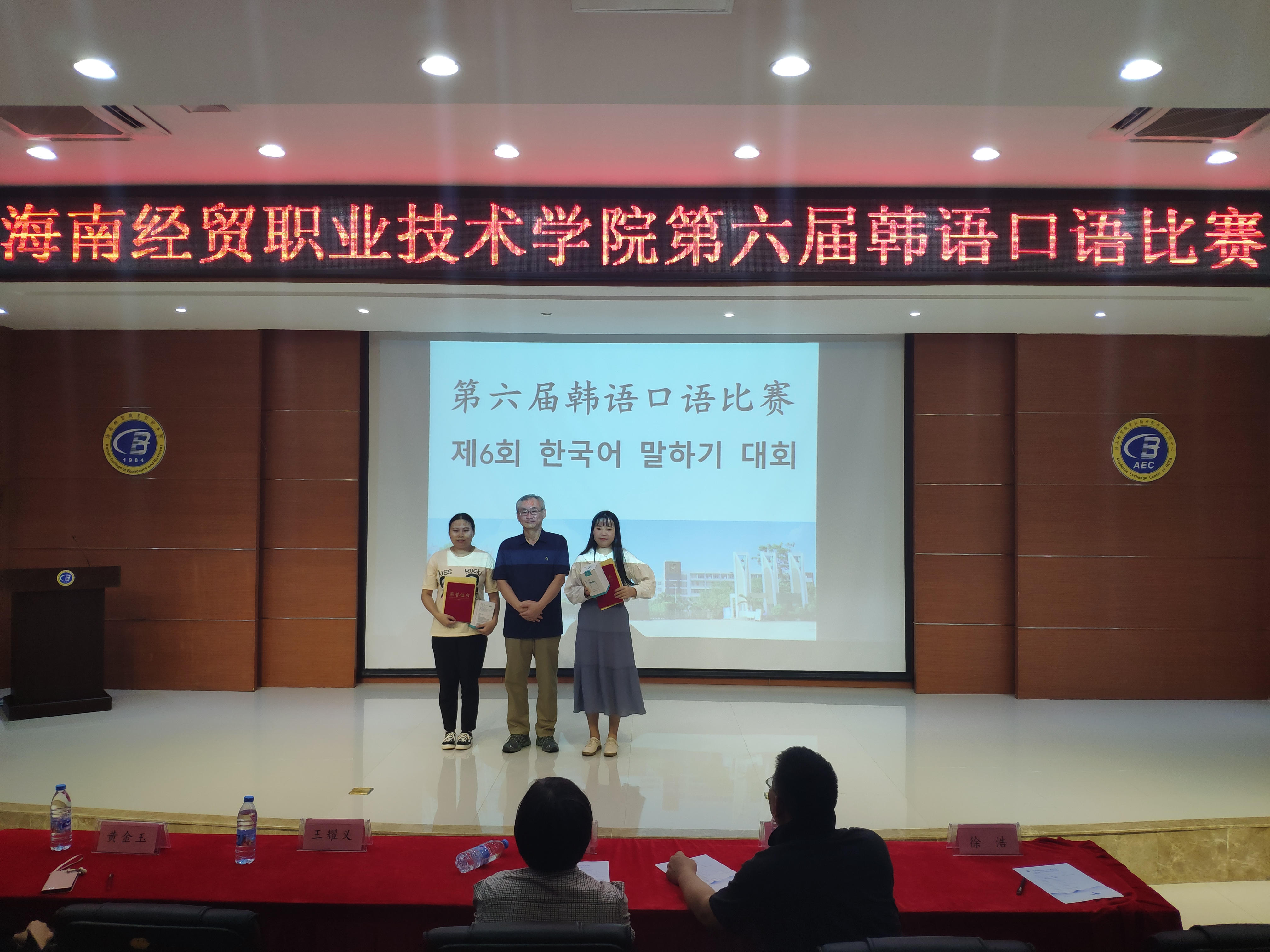 参加本次比赛的嘉宾有国际教育学院张春玲院长、黎瑛副院长;评委是来自海南师范大学的曹春玲教授,日语外教林由惠老师,韩语外教金永天老师以及本院应用日语和应用韩语专业的教师。