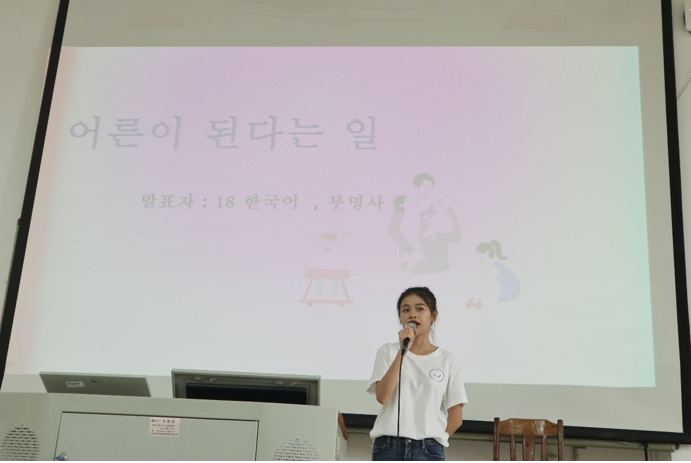 紧张的比赛环节之后,18应用韩语班的陈艳青同学带领大家玩起了成语接龙的小游戏,将现场气氛推入了第二个高潮。至此,第七届韩国语口语大赛就此拉上了帷幕,这对同学们来说是一次很好的机会,不仅锻炼了自己的口语能力,也为以后参加大型韩语演讲比赛积累了经验,也有助于同学们提升有关韩语方面听说能力以及培养全面发展的应用型、复合型、外向型高素质外语外事人才。