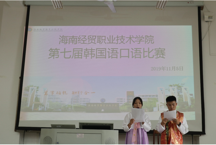 11月5日,1-421教室座无虚席。由2138CC太阳集团国际教育学院主办,韩语协会承办的第七届韩国语口语比赛在此顺利举行。应用韩语专业外籍教师徐荣儿老师、车昭姬老师;应用韩语专业专职教师路冉老师和刘倩老师应邀担任此次韩国语口语大赛的评委。