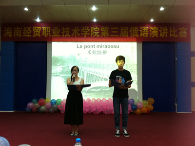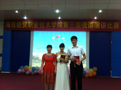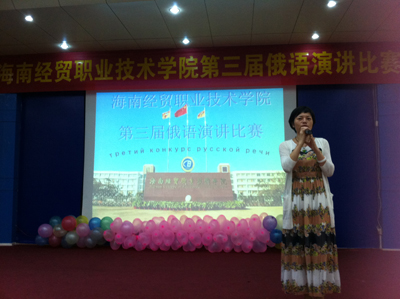 俄语专业教师及外籍教师作为评委应邀出席比赛。经过初赛、复赛的几轮选拔与评比,共有十名同学进入决赛。整场比赛分为演讲环节、问答环节及才艺展示环节。应用外语系朱琳书记表示,这样整合起来的内容非常好:“这样使得活动内容充实,丰富而多样。可以看出同学们下了很大的决心,辅导老师也很辛苦,指导了很多。。。这样的相互提高是特别让我们高兴的。”在谈到俄语专业的就业前景时,朱琳书记表示,目前总体来看,俄语专业的就业前景是被非常看好的。博鳌亚洲论坛期间,由俄罗斯副总理带队的30人代表团队就是由我院选拔出的学生作为志愿者来进行服务的。另外,俄语在旅游,外交,娱乐等多行业多领域,都属于抢手专业。而我们学校,正是为学生和社会架起了一座人才输送的桥梁。愿意出国的学生,可以在老师的指导下明晰自己的目标,可以考俄罗斯的大学进行深造,还可以有机会享受到公费留学交换的待遇。这对于学生的专业学习和内涵素质的提高有这极大的益处。