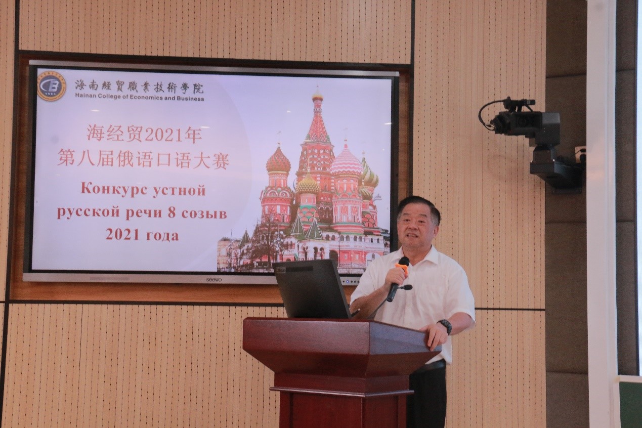 海经贸院长黄景贵、国际教育学院院长张春玲、书记于勇、副院长黎瑛莅临指导活动。14时30分,活动正式开始,黄院长致辞。黄院长在致辞中指出,口语大赛为俄语学子搭建了展示、学习、交流的平台,丰富了校园生活。比赛过程中各学院学生共同参与,既展示了良好的语言能力和精神面貌,又增进了文化交流。他希望同学们在日常的学习生活中,能够培养自己的思辨能力,尤其是面临着百年未有之大变局,要站稳脚,努力成为国家建设的栋梁之材。最后,他对同学们的成长提出了殷切希望,也祝愿俄语专业蒸蒸日上,蓬勃发展!