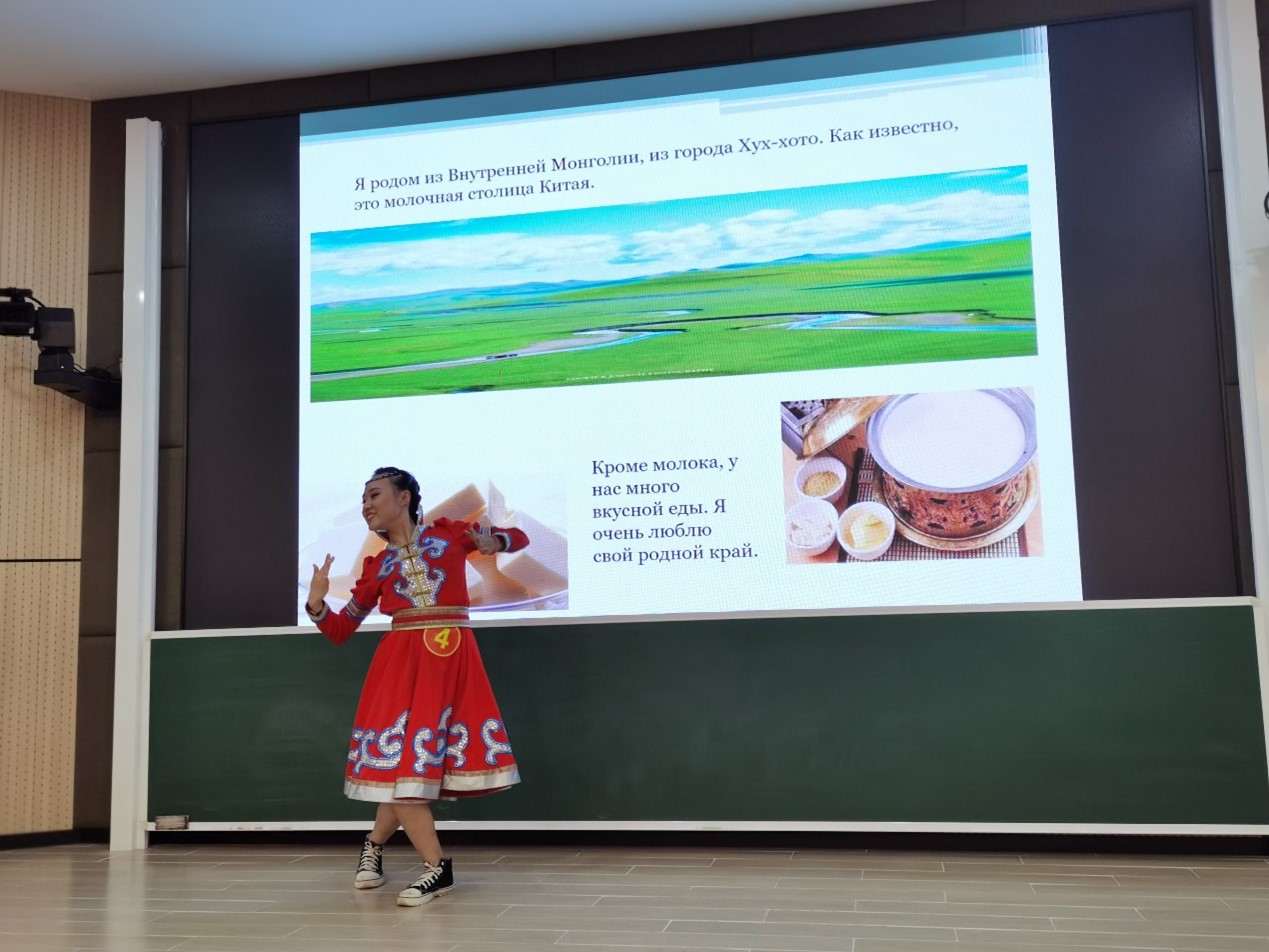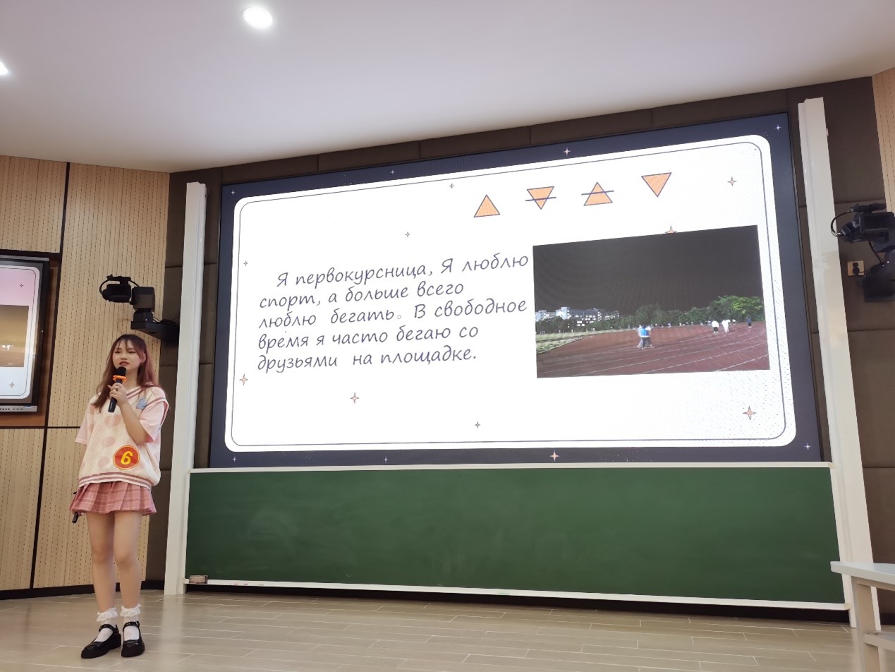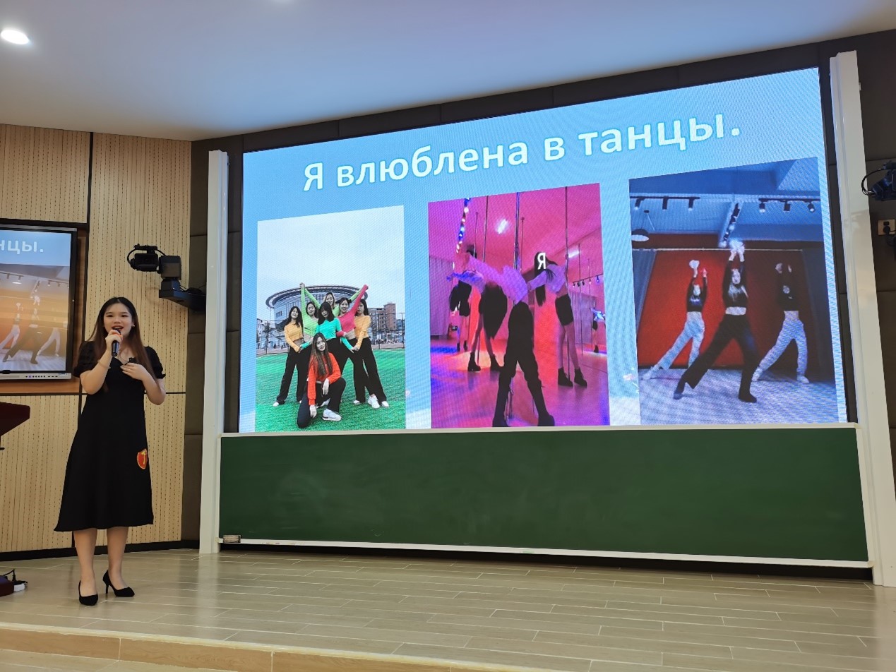 比赛分两轮进行,第一轮是自我介绍和才艺展示:充满异域风情的蒙古舞、优美动听的俄罗斯歌曲、扣人心弦的魔术表演……同学们灵动活泼、娓娓道来,异彩纷呈的节目赢得评委和观众们的阵阵掌声。