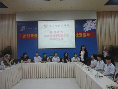 应海南省旅游学校的邀请,今天我院俄罗斯留学生与省旅校学生进行了友好交流。省旅校冯校长及校长助理李老师亲自在校门口迎接俄罗斯留学生。该校烹饪班的学生特意为我校俄罗斯留学生准备了美味的糕点。李老师鼓励大家珍惜这次学习机会,为传承中俄文化努力学习。同学们从最初的拘谨到慢慢地熟悉,大家互帮互助,各自用各自掌握的外语进行亲切的交流,期间同学们互换电话。这次的交流同学们都收益很多,最后难得难分,期待下期见面。