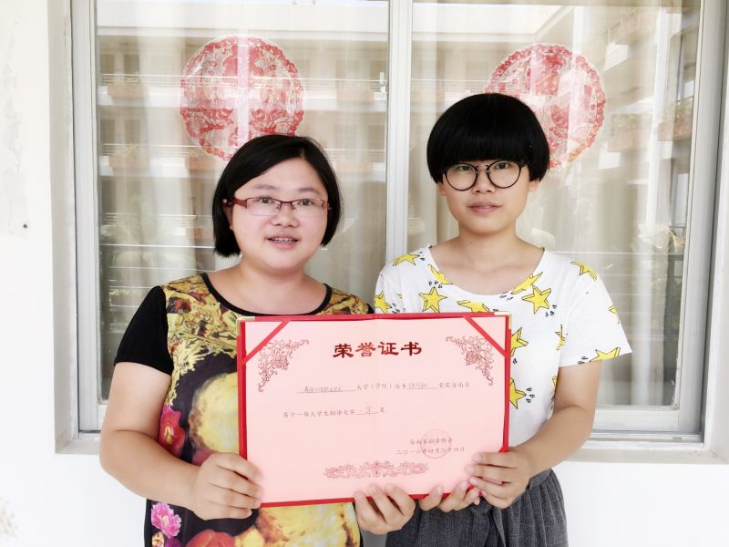 我是14级俄语班的张丹枫,能够有机会参加海南省十一届大学生翻译比赛,我非常激动与开心。能在大赛中获得专科一等奖,结果是让人欣慰和满意的。这次大赛的整个准备过程以及参赛过程对我来说无疑是一次美好的回忆。
