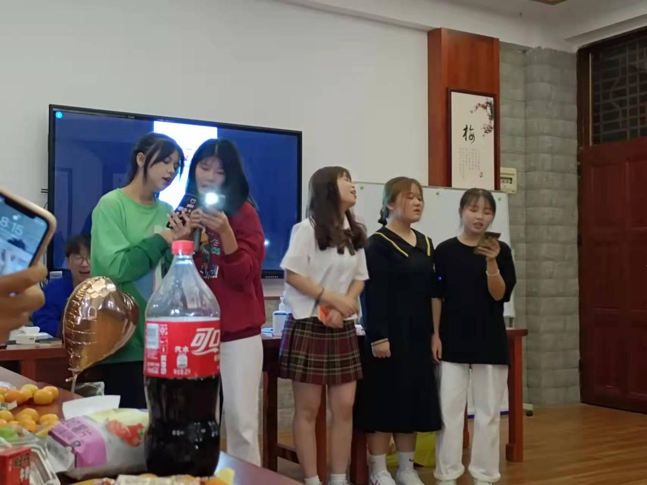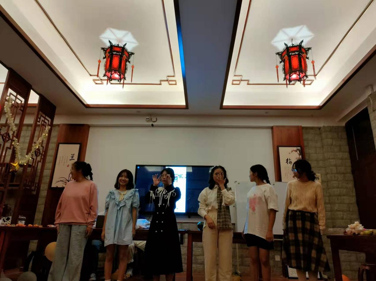 导演兼主持人王轩双语在主持,DJ黄奕林在默默工作。 你是否想过古人穿越海经贸会发生什么有趣的事情,宣传部门带来的《李清照梦回海经贸》。 他们的队名:绿叶,口号:Nothing is impossible. 队歌:团结就是力量。 美食部:芒果的吃法。