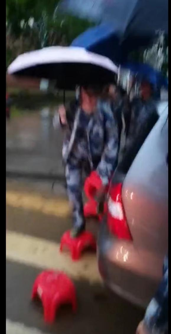 On the way back to the dormitory after the military training, Huang Yilin, Shihao and Jin Xinlong, Freshmen majoring in Tourism English, found that there was a lot of water around the teaching building. They used their stools to build a “bridge” in the water so that others could pass by safely. Meanwhile, they stood around to protect others from slipping. Huang Yilin's shoes and socks were wet by the heavy rain. However, he didn’t leave. Instead, he stood barefoot in the water with other boys. Chen Wenjie , the class assistant, has been with them in the storm.