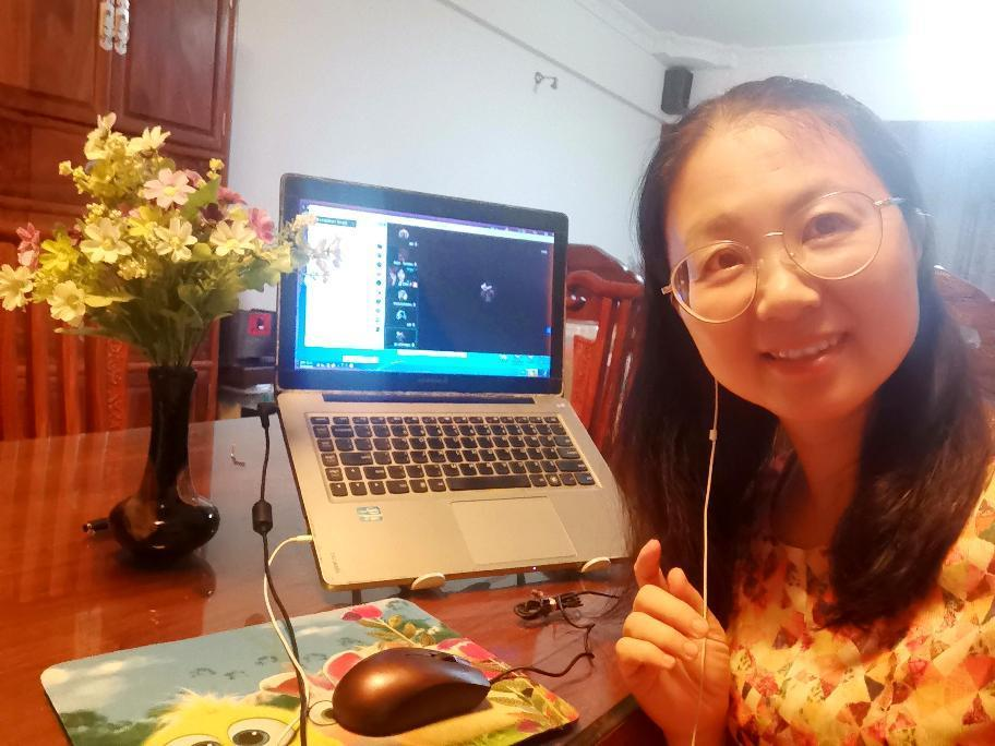 还有最后一位神秘嘉宾,原来是何春老师,相信已经有不少小伙伴猜到啦!没想到何春老师真是多才多艺,自己是英语老师,同时还会日语,没想到还会民族舞!何春老师还让同学们找找视频里哪个是她,这可难不倒大家,正确答案马上就出现在了公屏上。何春老师直呼同学们太厉害了!