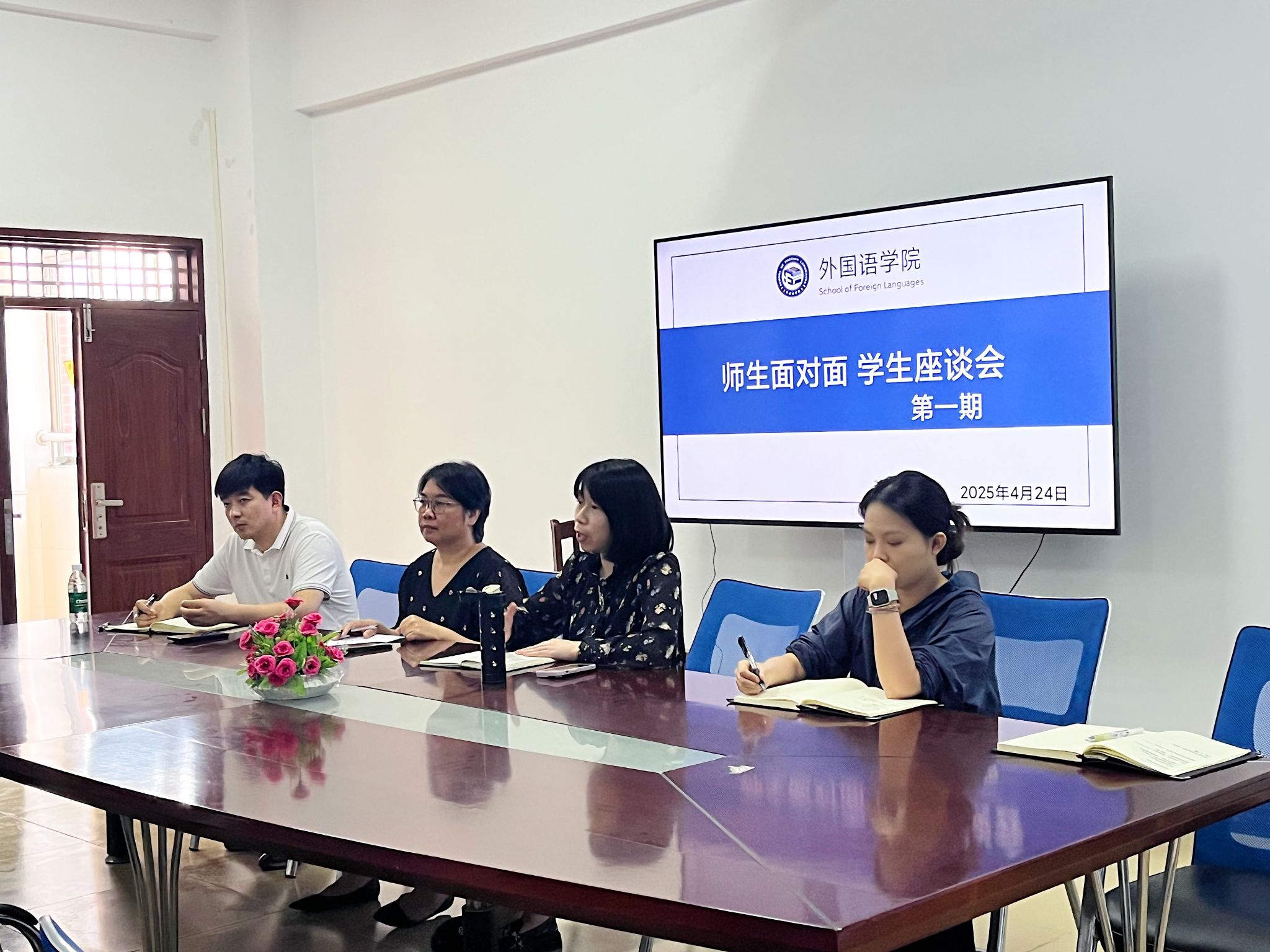 2025424日,外国语学院召开第一期“师生面对面“学生座谈会,学院党总支副书记郑艳、副院长黎瑛、全体辅导员以及22名学生代表齐聚一堂,围绕教学管理、学业发展、校园生活等议题展开坦诚交流,现场气氛热烈融洽。