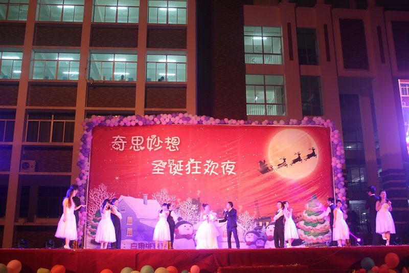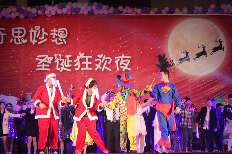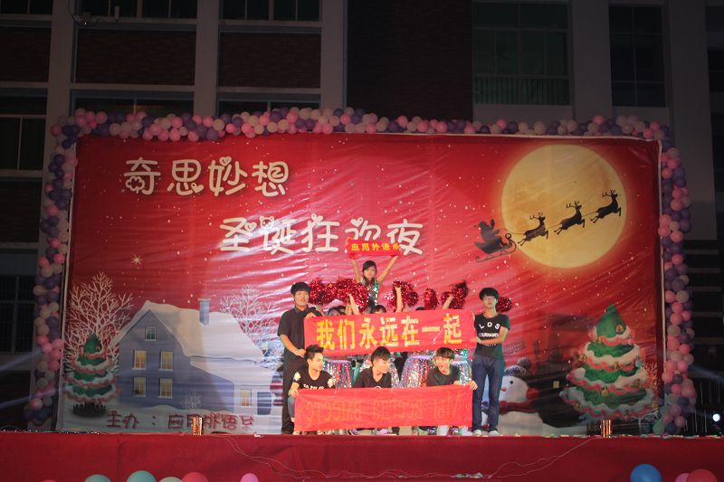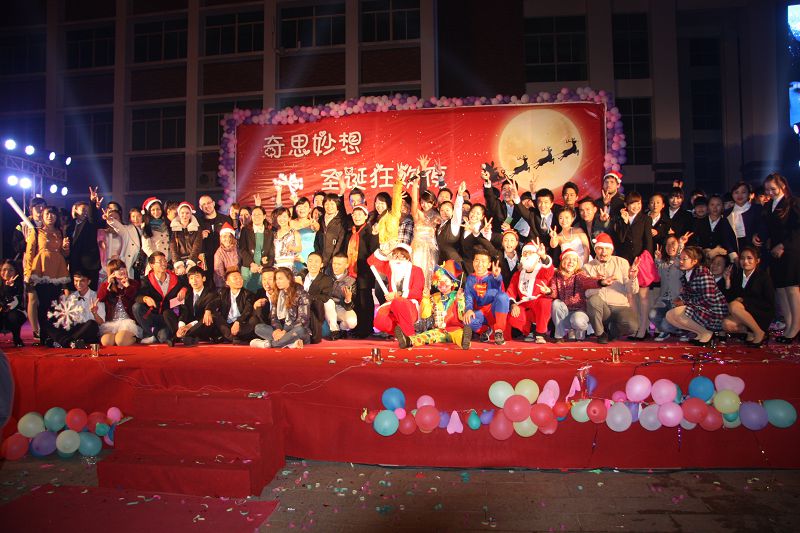 (应用外语系 赵俊贤报道)2013年12月22日晚7点30分,经贸广场上热闹非凡,由应用外语系全体师生筹备一个多月的圣诞晚会在此拉开帷幕。出席本次晚会的领导和嘉宾有学院党委徐畅副书记、应用外语系党总支朱琳书记、应用外语系张春玲主任、学工办副主任郑艳老师、辅导员郭蓉佳老师、代晓明老师以及就业干事李转风老师。