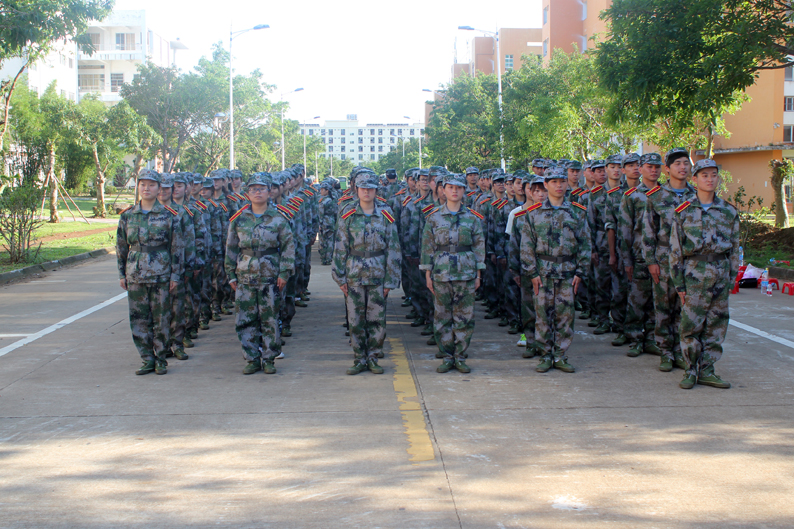 (应用外语系 周艳芳报道)9月,秋的世界,秋本该有着凉爽的和风,温暖的太阳,然而,在海南你感受到的是海南火辣辣的热情。2014年9月9日,在太阳公公流了两天泪后又露出金灿灿的笑脸的时候,可苦了一群孩子,他们是身着整洁的军训服行走在2138CC太阳集团校道上的14级新生,他们将在这样金灿灿的阳光下开启为期两个星期的军训。