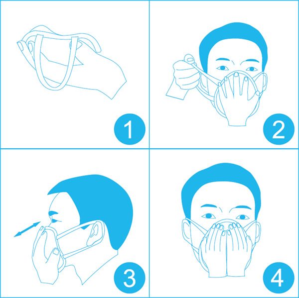 佩戴口罩时,用双手紧压鼻梁两侧的金属条,而后向下拉伸口罩,不留褶皱。戴框架眼镜的学生建议先戴好口罩,再戴眼镜。