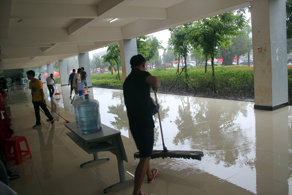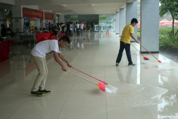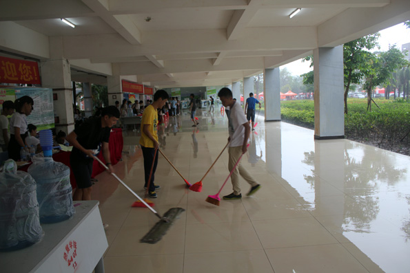 豆大的雨点还在一直往地下砸,呼呼的冷风也在不停地吹打在同学们身上,但这丝毫不能减退同学们的热情。同学们在自己的岗位上认真负责,让家长,14级新生真正感受到了应用外语系老师和同学的大爱,无私!
