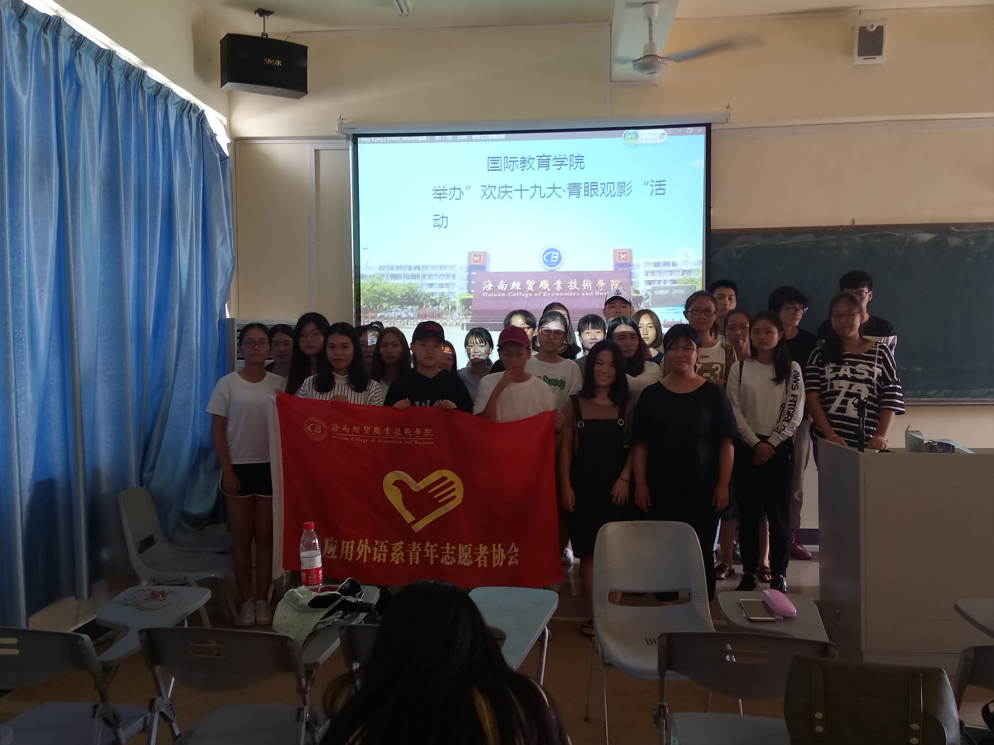 为了欢庆十九大的到来,国际教育学院于2017年10月21日9点30分,在一栋教学楼614教室举办了“欢庆十九大-青眼观影”为主题的活动。