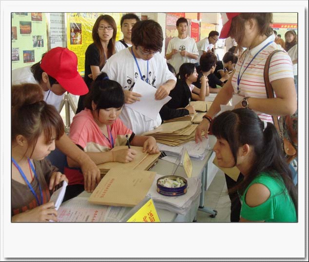 骄阳似火,盛夏高温,在学院校园内外随处可见应用外语系志愿者服务队,那里就活跃着我系全体党员的身影,瞧!他们头戴“志愿服务”的小红帽,他们热情接待并耐心地引导新生办理各项入学及入住手续,一句句贴心体己的话让新生倍感温暖。一本由覃书记亲自拟定的《新生入学温馨提示》发放到各位新生的手中,温馨提示各位新生注意安全等方面的问题,同样让新生一进入应用外语系就感受到大家庭般的温暖。
