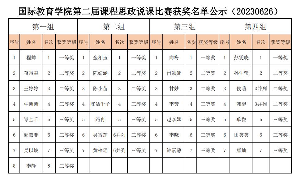 附:国际教育学院第二届课程思政说课比赛获奖名单