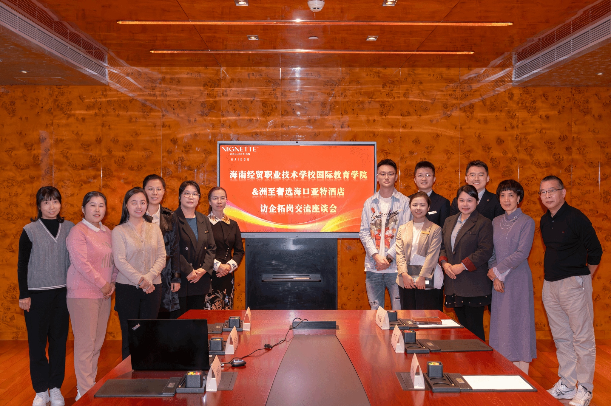 2024年12月30日,国际教育学院刘莉副院长、黎瑛副院长及各专业主任一行9人赴洲至奢选海口亚特酒店开展专业调研及访企拓岗交流座谈会。此行旨在通过加强与企业的紧密联系,为人才培养和行业发展搭建桥梁。