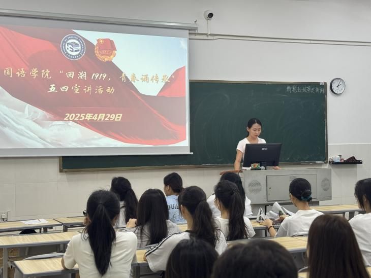2025年4月29日,外国语学院开展“回溯 1919,青春诵传承”五四青年节主题活动,带领入党积极分子和入团积极分子重温历史,汲取奋进力量。