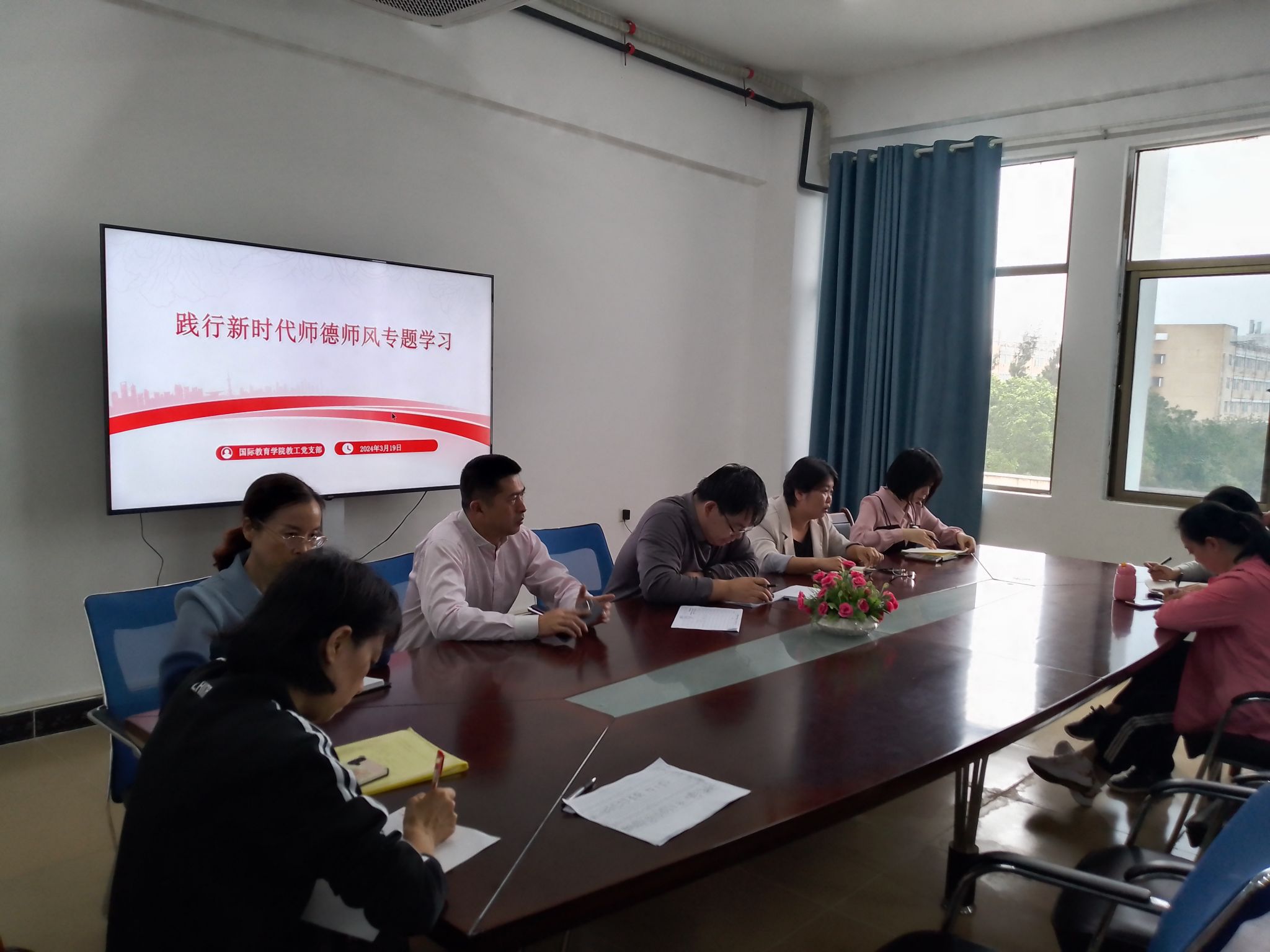 为进一步规范教师从教行为,加强师德师风建设,2024年3月19日下午,国际教育学院教工党支部在5-411会议室开展师德师风专题学习活动。