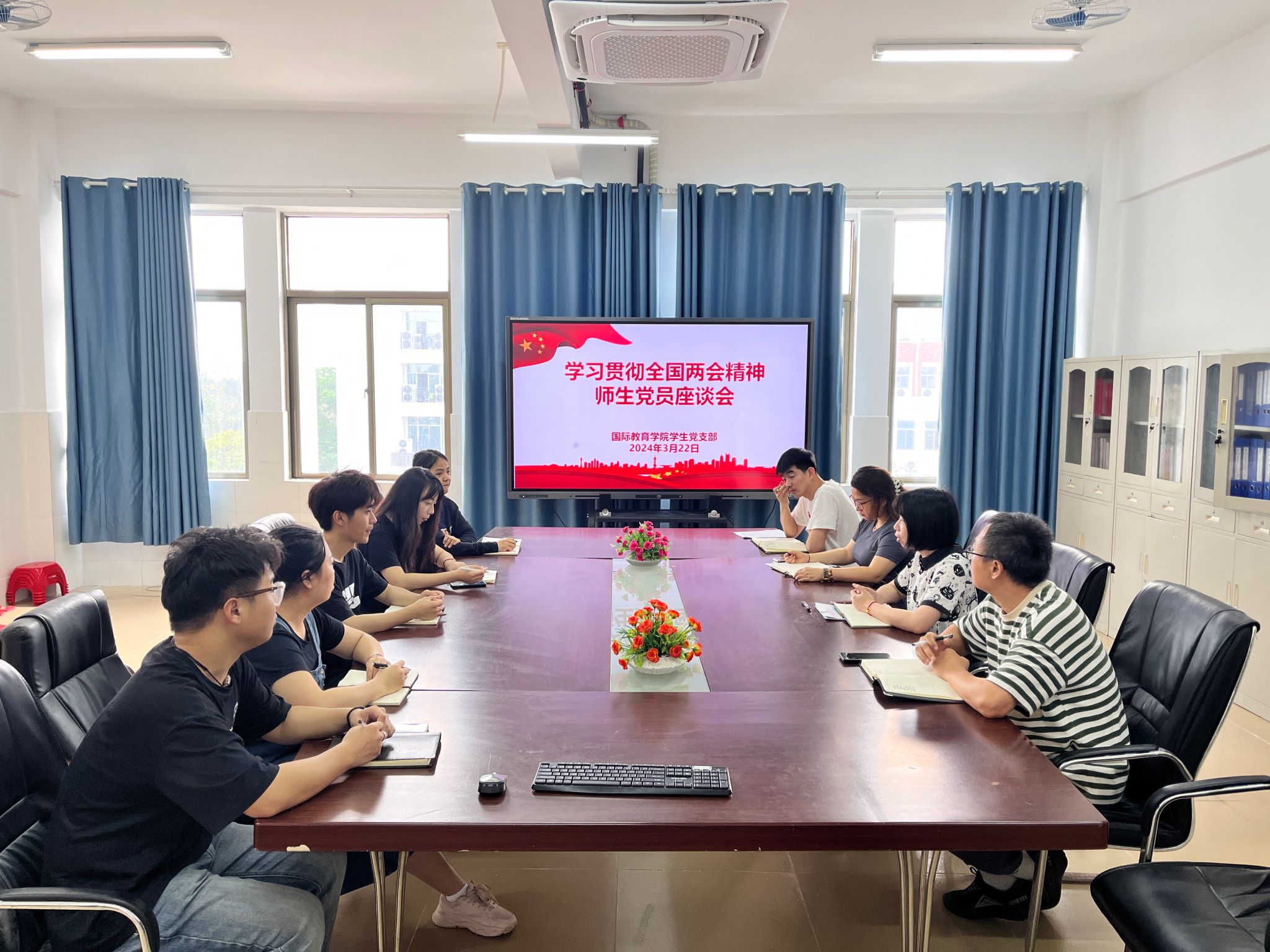 3月22日,国际教育学院学生党支部召开学习贯彻全国两会精神师生党员座谈会。支部全体党员教师和学生党员代表参加了座谈会,会议由党总支副书记、支部书记郑艳主持。