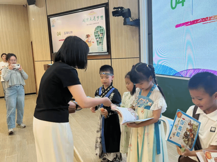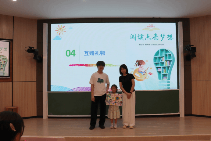 礼物互赠环节将活动推向高潮,幼儿园小朋友们向外国语学院赠送亲手绘制的画作,色彩斑斓的笔触承载童真愿景,外国语学院党总支副书记郑艳代表学院回赠精心挑选的绘本,传递知识的火炬,表示大手牵小手的共读,不仅是文化的传承,更是终身学习理念的实践。