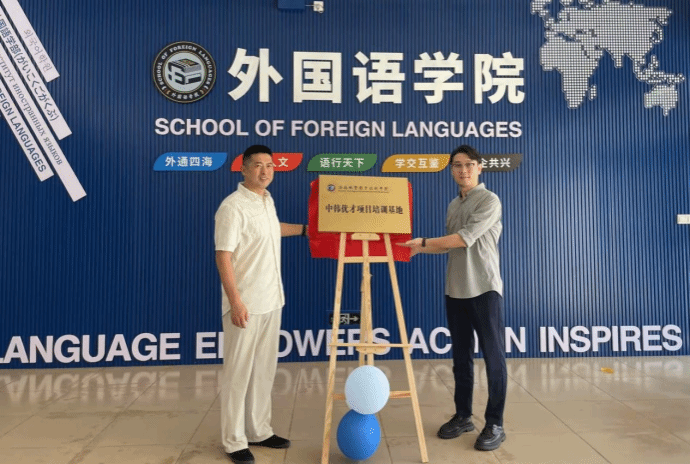 2025年6月19日,外国语学院与韩中总商会在我校举行“中韩优才项目培训基地”挂牌仪式,标志着双方合作进入实质性推进阶段。韩中总商会田夏会长一行到访我院,与学院领导就合作细节展开深入交流,并共同为培训基地揭牌。