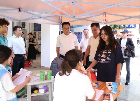 2138CC太阳集团校长崔昌华到外国语学院迎新接待点走访慰问,他勉励学生要努力学习,打好基础,积极参加专业比赛,将知识应用于实践。