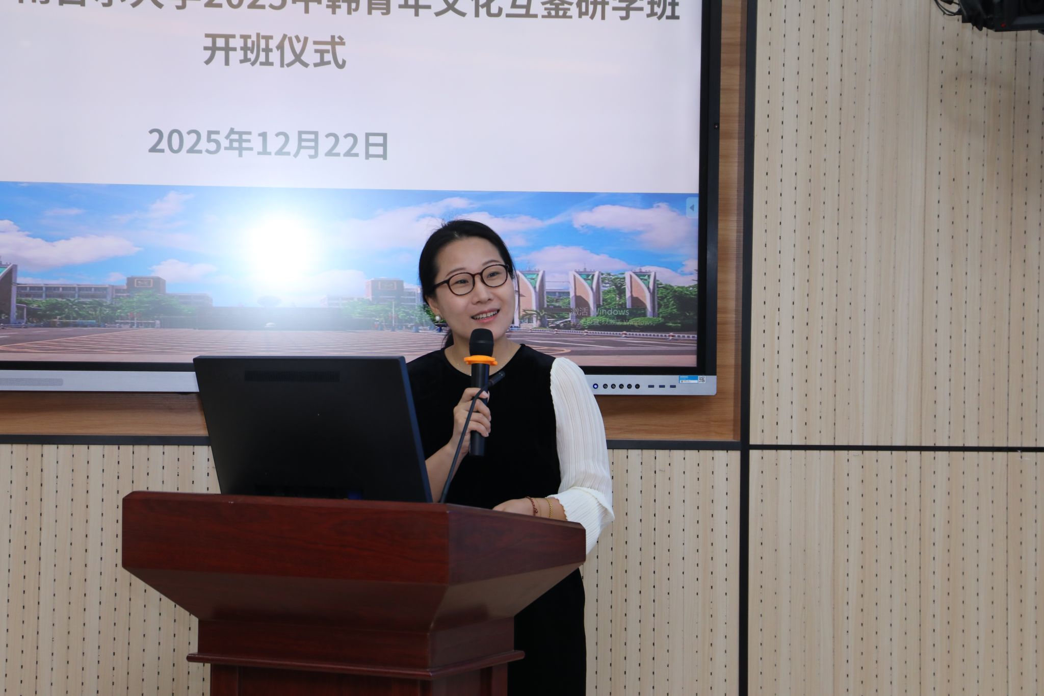 韩国南首尔大学中文系金瑛教授在发言中表示,此次研学班为两国青年创造了直面彼此文化、促膝交流的宝贵平台。她期待同学们在亲身体验中感知文化的异同,将所见所闻转化为促进两国人文交流的持续动力,努力成长为中韩友好的传承者与推动者。