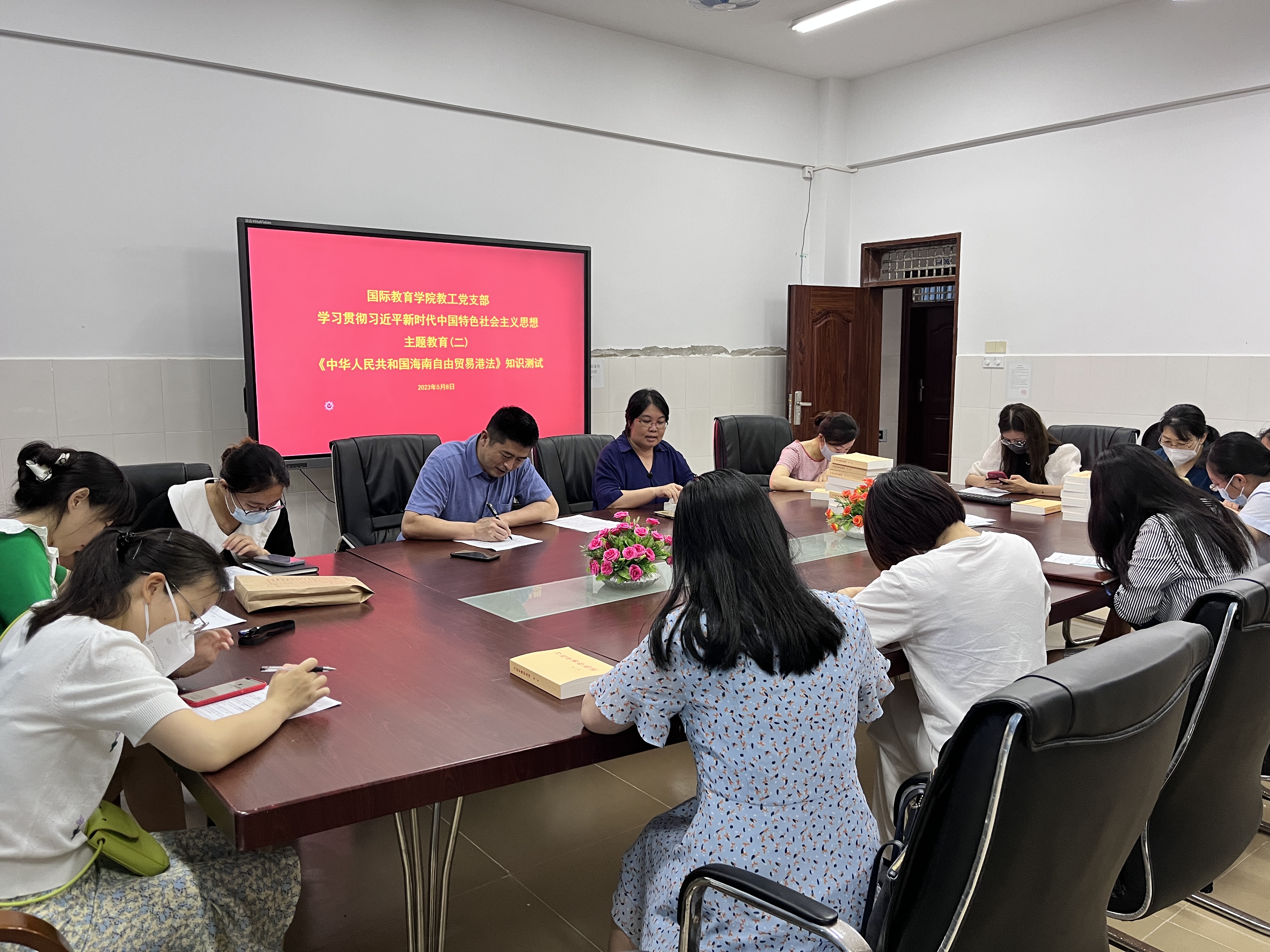 5月8日上午,国际教育学院教工党支部在5-405开展学习贯彻习近平新时代中国特色社会主义思想主题教育的第二次专题学习--《中华人民共和国海南自由贸易港法》知识测试。支部全体党员参加,教工支部书记黎瑛主持知识测试活动。通过知识测试,全体党员对《中华人民共和国海南自由贸易港法》精神有了更深刻的领会,努力做学习、遵守、维护自贸港法的表率,努力成为海南自由贸易港法的执行者、营造国际一流营商环境的推动者。