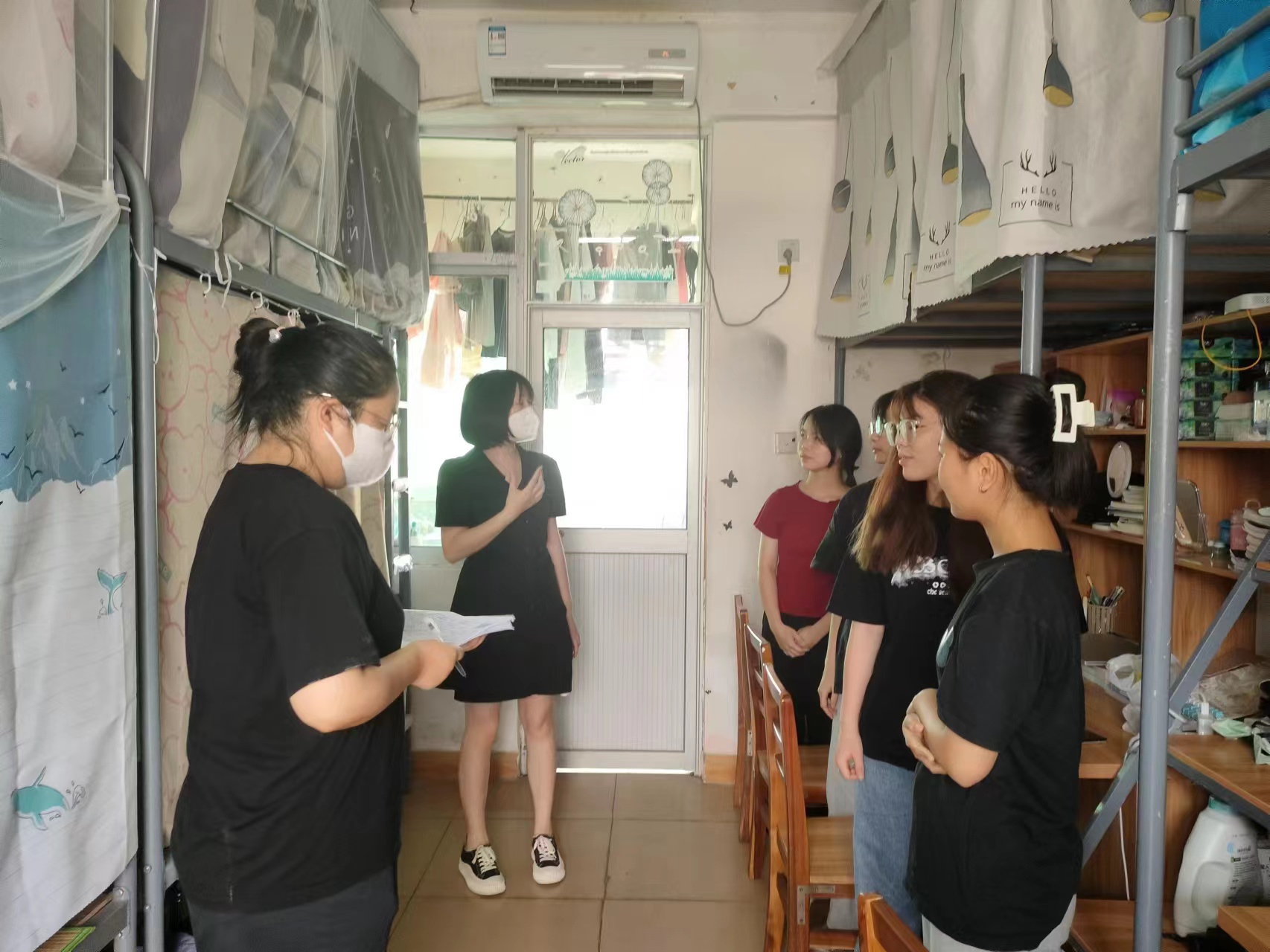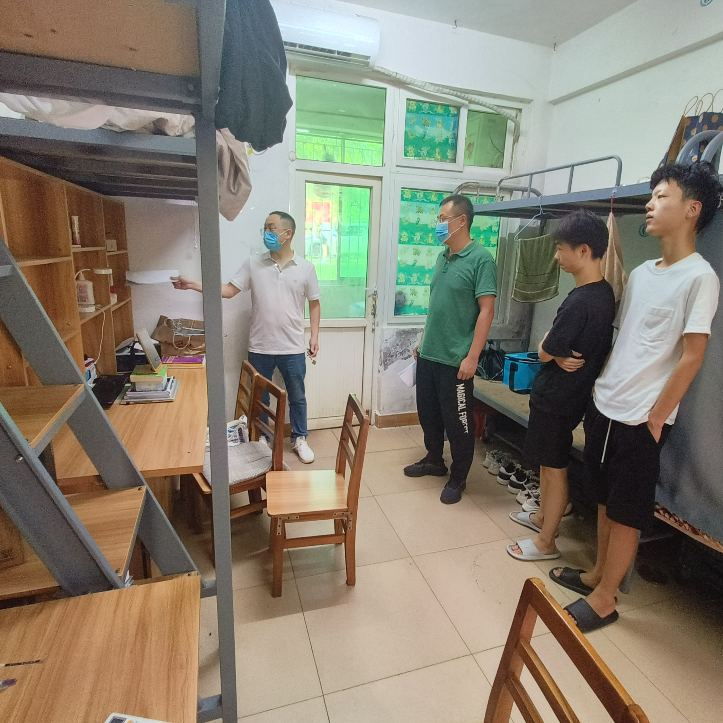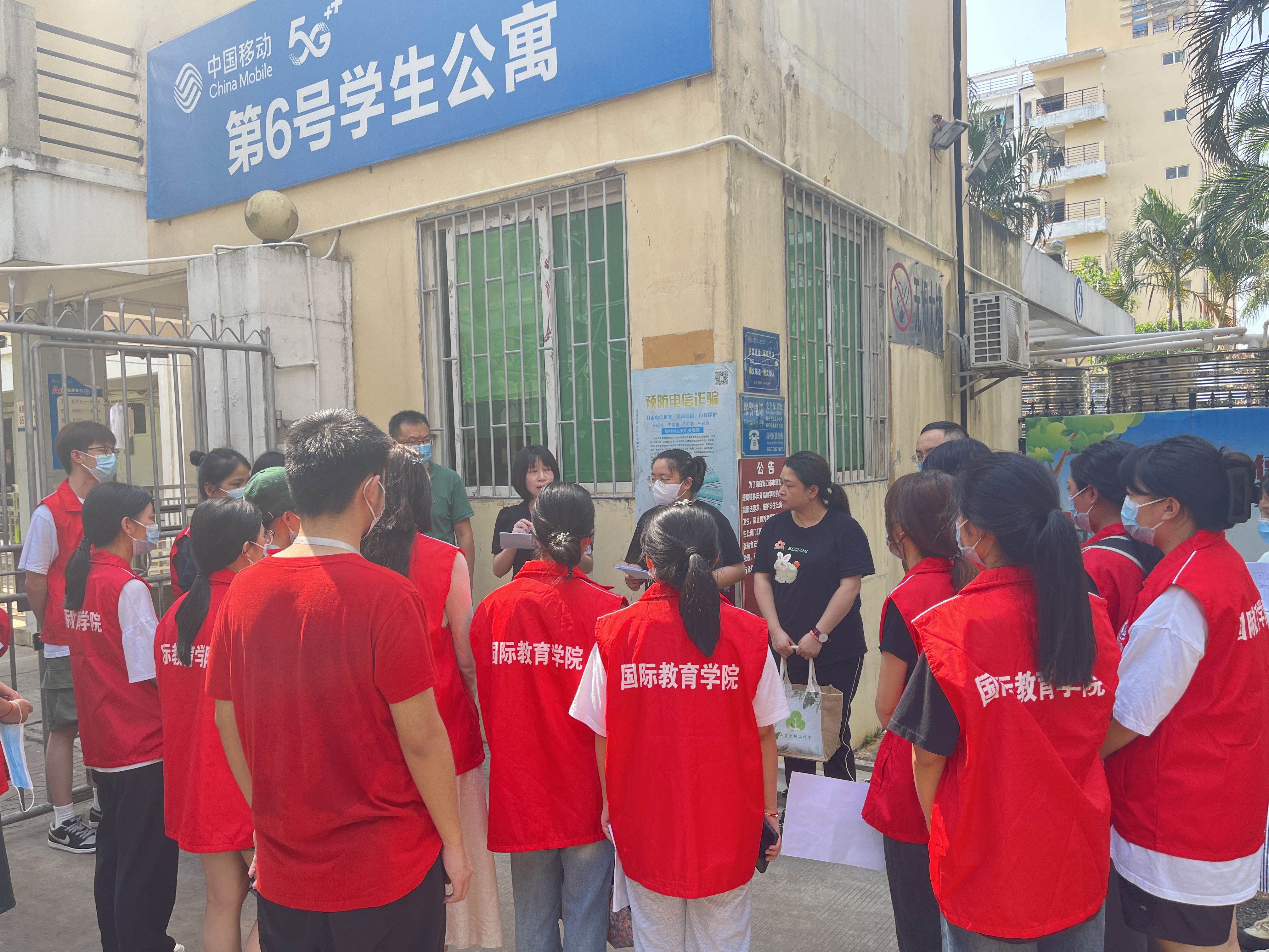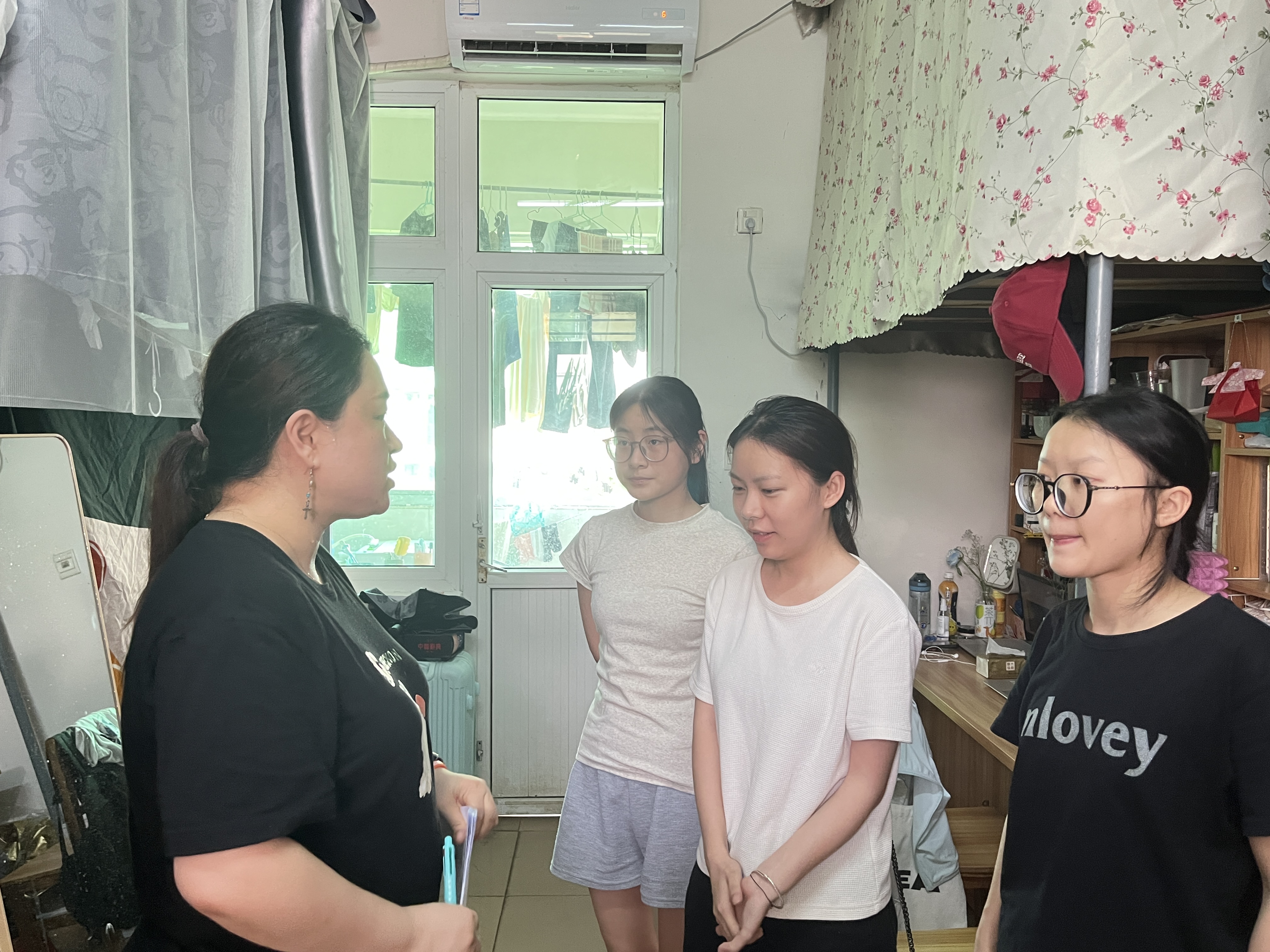 5月23日下午,国际教育学院党总支副书记郑艳带领全体辅导员和部分党员、入党积极分子深入学生宿舍,逐一走访每间宿舍,了解学生的学习和生活状态,并对安全文明宿舍建设进行现场检查督导。