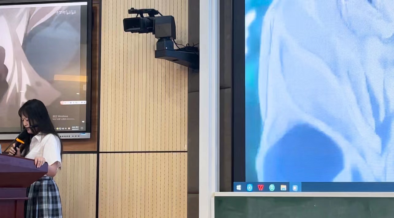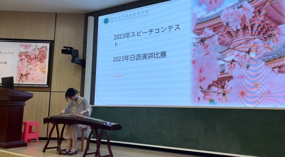 在演讲比赛和配音比赛的中场交换,张王羽同学给我们带来了一场古筝秀《彝族舞曲》,让在场的人仿佛接受到了心灵的洗涤,乐声非常优美。在接近大赛的尾声的时候,来自海口旅游职业学校的王荣凡同学也给我们带来了惊艳的配音秀。后续又和21级应用日语2班周茂彪同学带来了一首合唱《My Friend》。使气氛烘托到了极点。