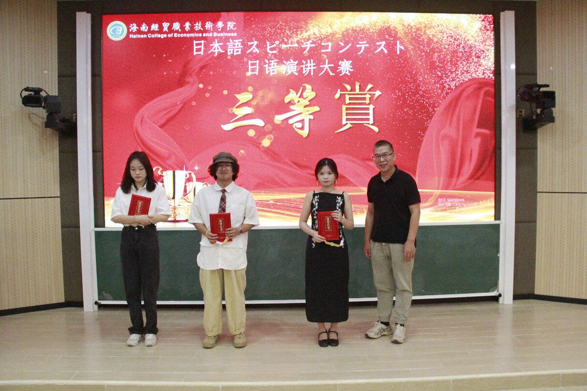 本次日语口语比赛,选手们热情踊跃,精心准备,为大家带来了一场精彩的视听盛宴,并且,通过本次大赛,学生们的日语口语技能得到了充分锻炼,同时也促进了同学们学习日语的热情,丰富了同学们的课余生活,为同学提供了一个展示自我、表现自我的舞台。大赛的意义不止在于获奖,准备比赛的过程已经收获了非常多的知识。窗外有风景,手里有书本,眼里有梦想,心中有未来。在这个同学们之间追逐活动的尾声,由周茂彪、黄欣妍、符艺、符传健、杨清锴携手台下的观众们一起合唱《稻香》。本次大赛以歌声开始,又以歌声结束。这不是我们的终点站,本次大赛圆满结束,让我们期待下一届大赛的到来!