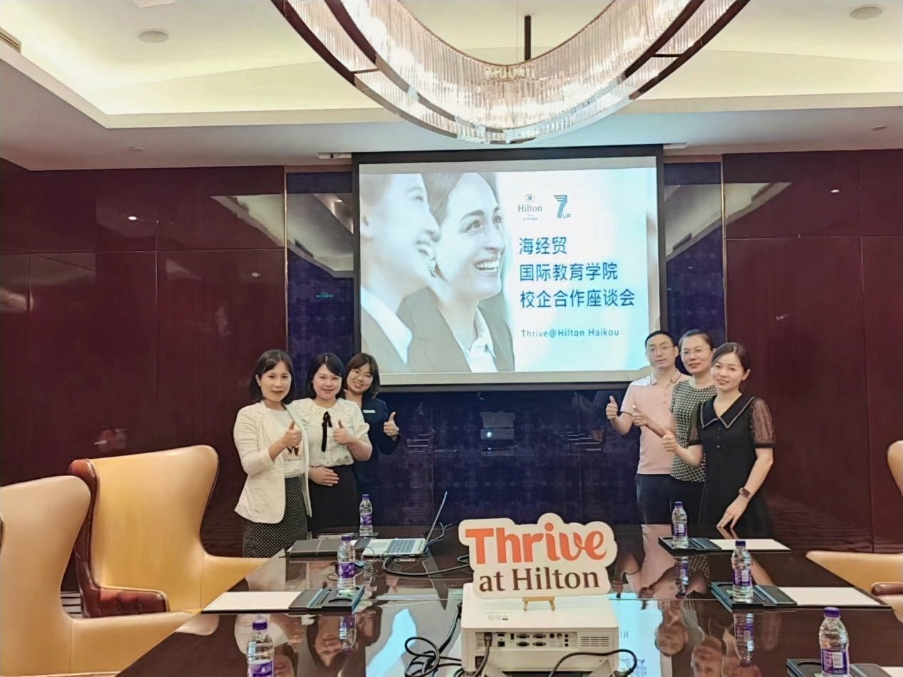 2023年4月28日上午,国际教育学院学工办主任黄银亮、酒店管理专业(国际学生)专业负责人林文超、国际汉语教研室负责人侯萌、应用韩语专业负责人路冉、国际汉语教师单微一行人前往海口希尔顿酒店进行企业调研。海口希尔顿酒店张心怡经理对到访的我校老师们进行了热情的接待,餐饮部齐经理以及人事部叶经理参与了座谈会,共同探讨校企合作事宜。