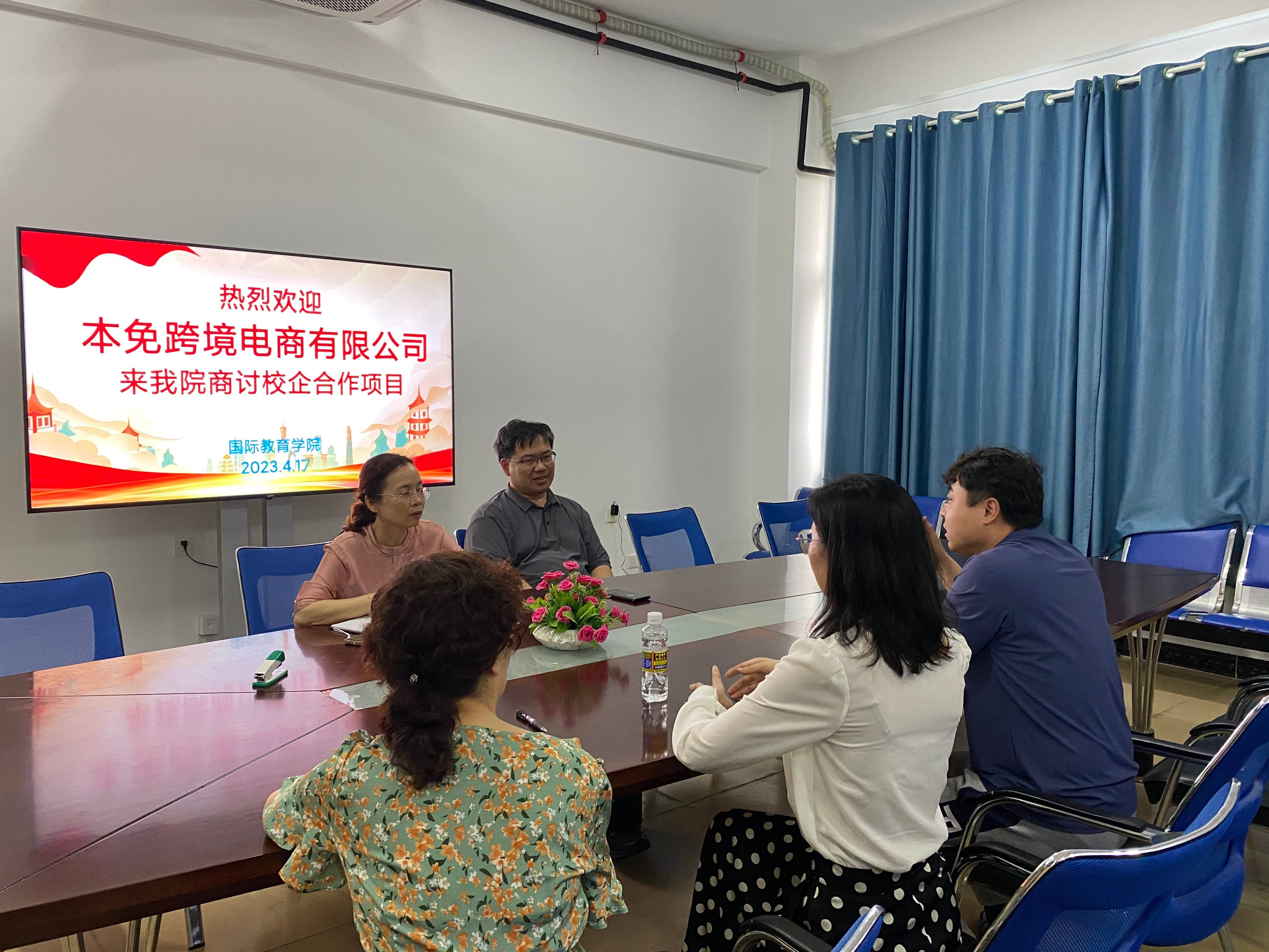 2023年4月17日,日本企业本免跨境电商有限公司张冬青总经理一行3人前来我院进行座谈。座谈中,国际教育学院于勇书记详细介绍我校办学概况、专业建设等情况,刘莉副院长介绍了国际教育学院人才培养情况以及毕业生就业创业等情况。之后双方就人才培养、校园招聘、实习实训、就业指导等方面进行了交流,双方希望共同搭建毕业生就业创业平台,为毕业生创造更多实习和就业创业机会,实现校地、校企互助共赢,更好地服务地方经济社会高质量发展。2023年4月12日,日本企业本免跨境电商有限公司张冬青总经理一行3人前来我院进行座谈。座谈中,国际教育学院于勇书记详细介绍我校办学概况、专业建设等情况,刘莉副院长介绍了国际教育学院人才培养情况以及毕业生就业创业等情况。之后双方就人才培养、校园招聘、实习实训、就业指导等方面进行了交流,双方希望共同搭建毕业生就业创业平台,为毕业生创造更多实习和就业创业机会,实现校地、校企互助共赢,更好地服务地方经济社会高质量发展。