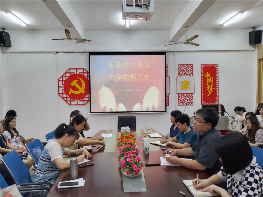 2022年6月27日上午,为做好学院各项工作,更好地总结经验,国际教育学院在1-323会议室召开了全体教师大会。