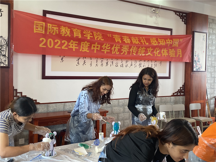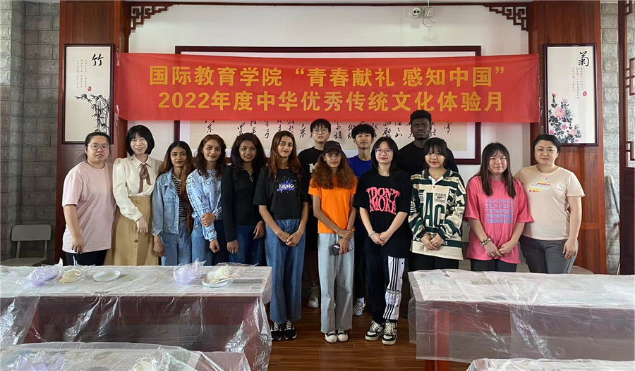 ·感知中国”2022年度中华优秀传统文化体验月第一期活动。国际教育学院党总支副书记郑艳、汉语教研室主任侯萌和辅导员韩笑、肖意出席本次活动开幕式。