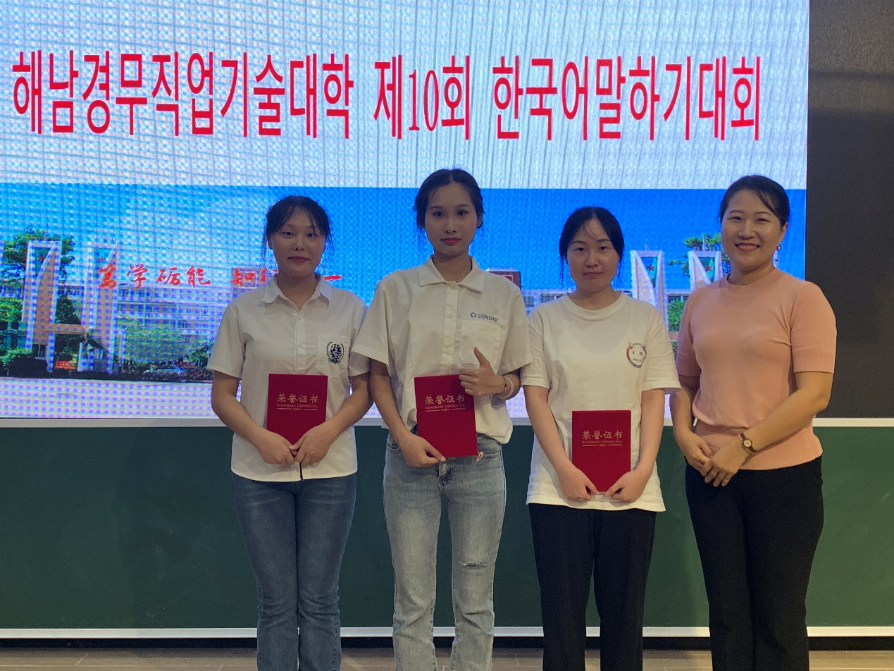2022年6月10号下午,第十届韩国口语大赛在1-421成功举办。本次大赛旨在激发广大学生学习韩语的热情,重视韩语口语表达,进一步提高学生的韩语综合运用能力,通过竞赛达到推动韩语教学和专业的发展。此次大赛邀请到应用韩语专职教师金相玉老师、路冉老师和外籍教师张智善老师、李权昶老师担任本次韩国语口语大赛的评委。