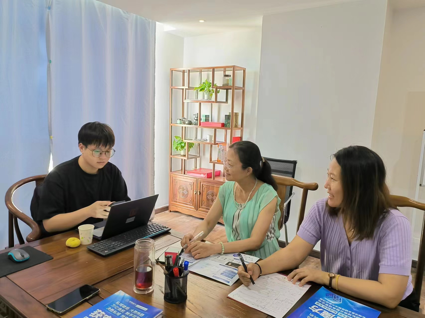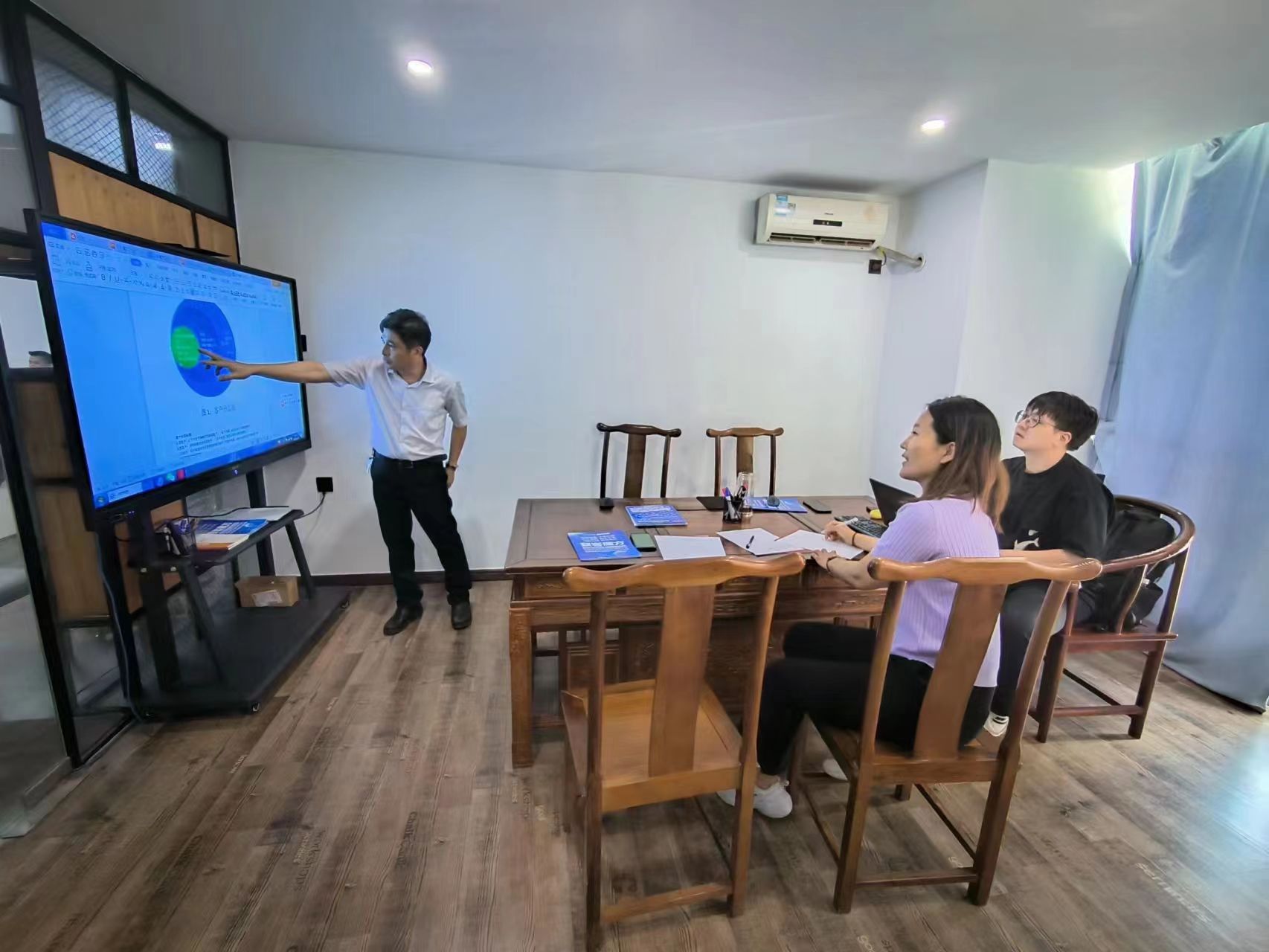 6月29日下午,两位指导老师和项目负责人毕仕麟前往合作企业海南获客魔方网络有限公司进行赛前最后一次企业培训。两位企业导师对项目的服务、技术等优势细致讲解,透彻分析,并结合案例深入浅出,拓宽了我们的视野。