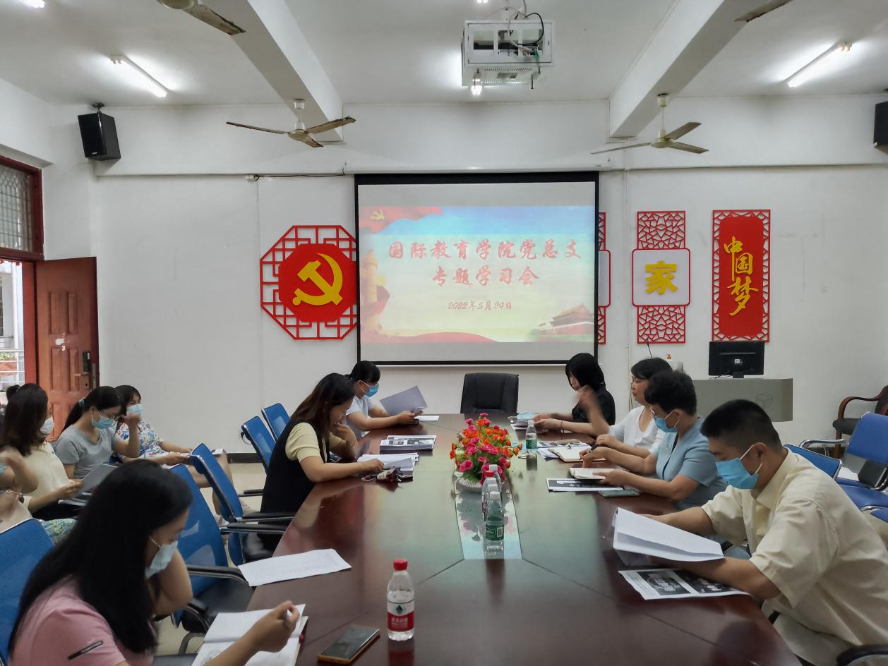 2022年5月24日,国际教育学院党总支召开了专题学习会,学习传达习近平总书记在海南考察时的重要讲话精神、省第八次党代会精神和中国职业教育法的文件精神。党总支副书记郑艳主持会议并作重要讲话,结合师生教学工作交流了学习体会、落实思路和举措,张春玲院长、黎瑛副院长、韩大伟副院长及全体党员参加了本次会议。