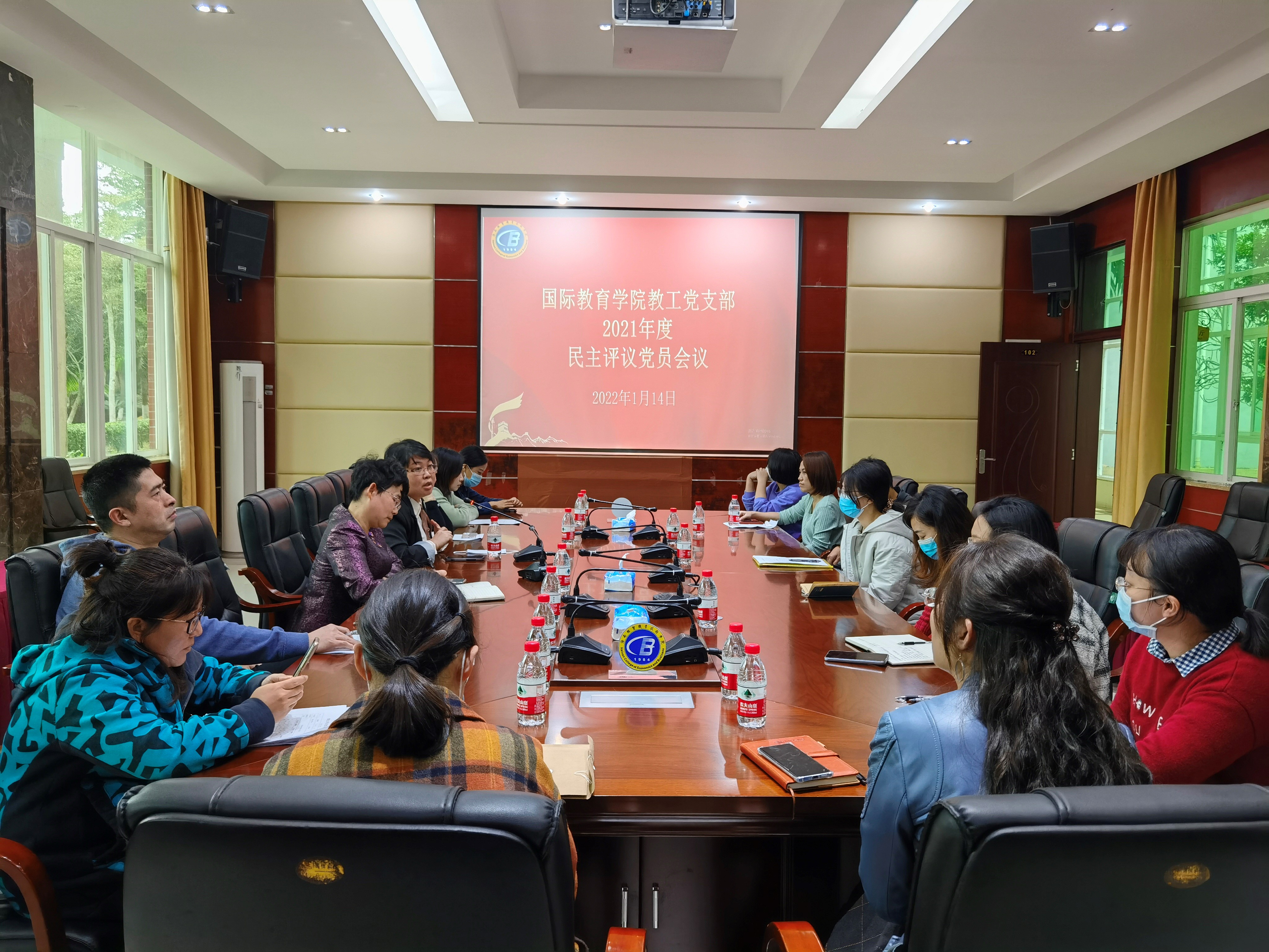 2022年1月14日上午,国际教育学院教工党支部在学术交流中心报告厅多功能厅召开了民主评议党员会议,会议由支部书记黎瑛主持。教工党支部全体党员参加了会议。