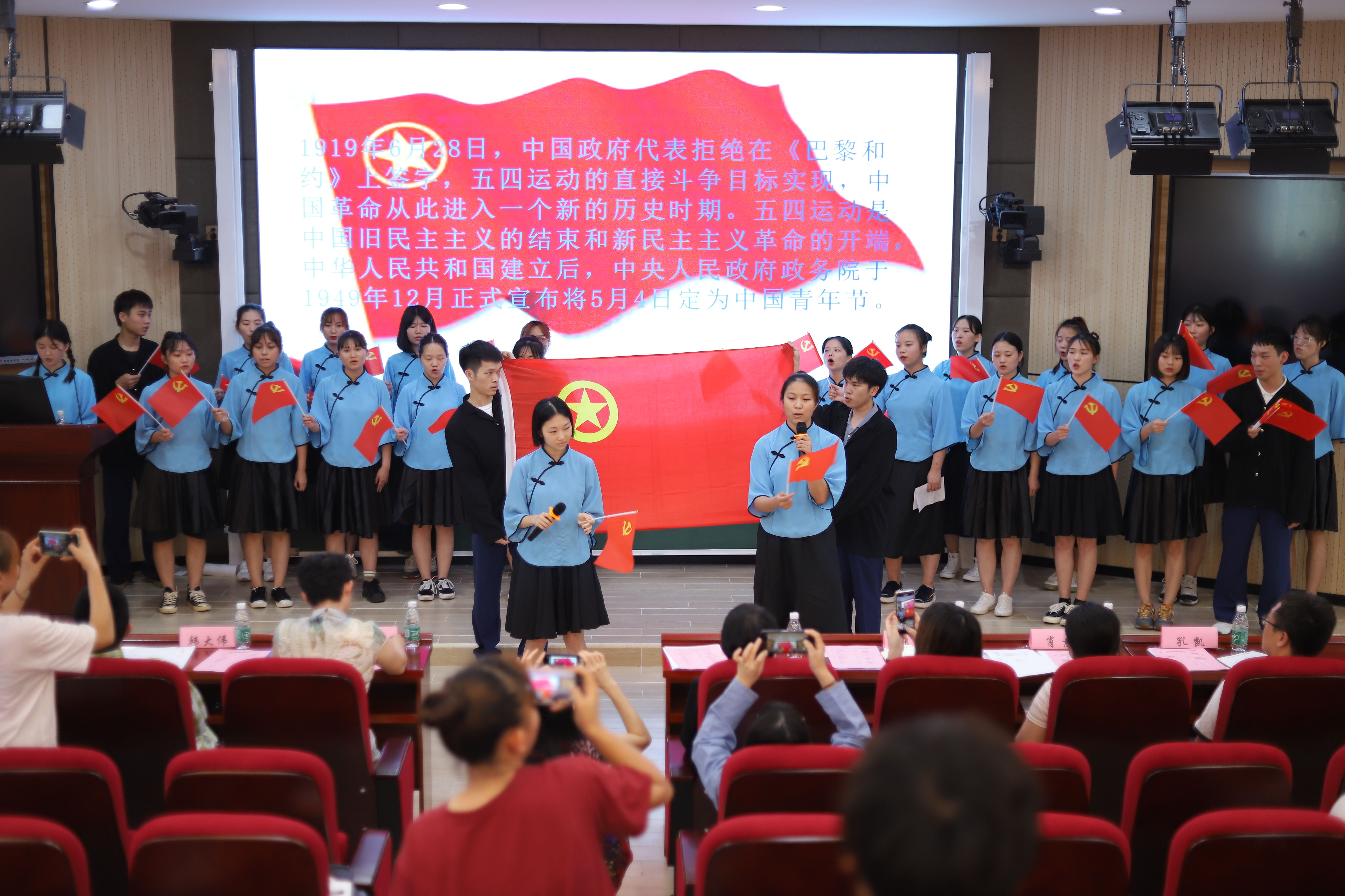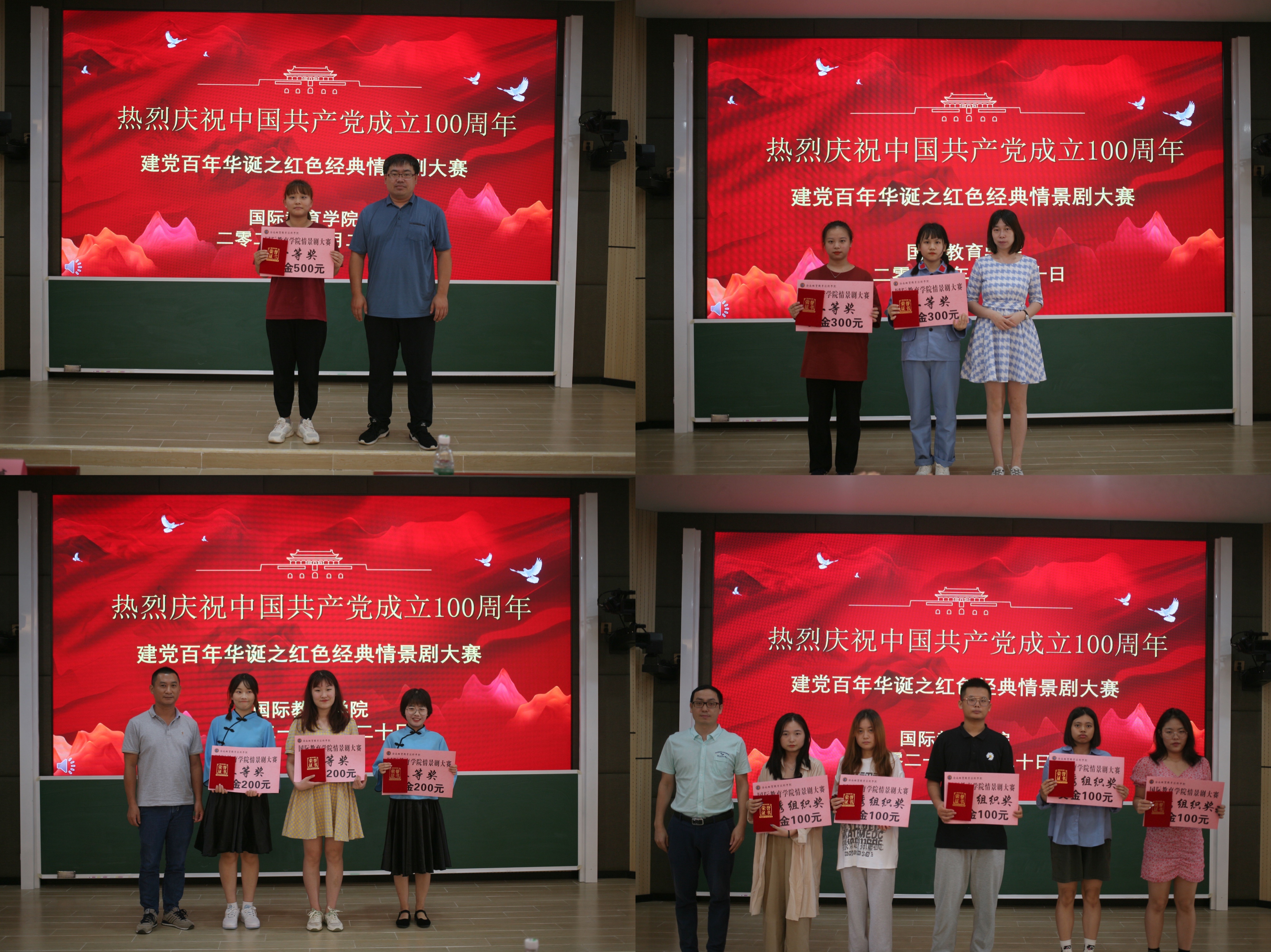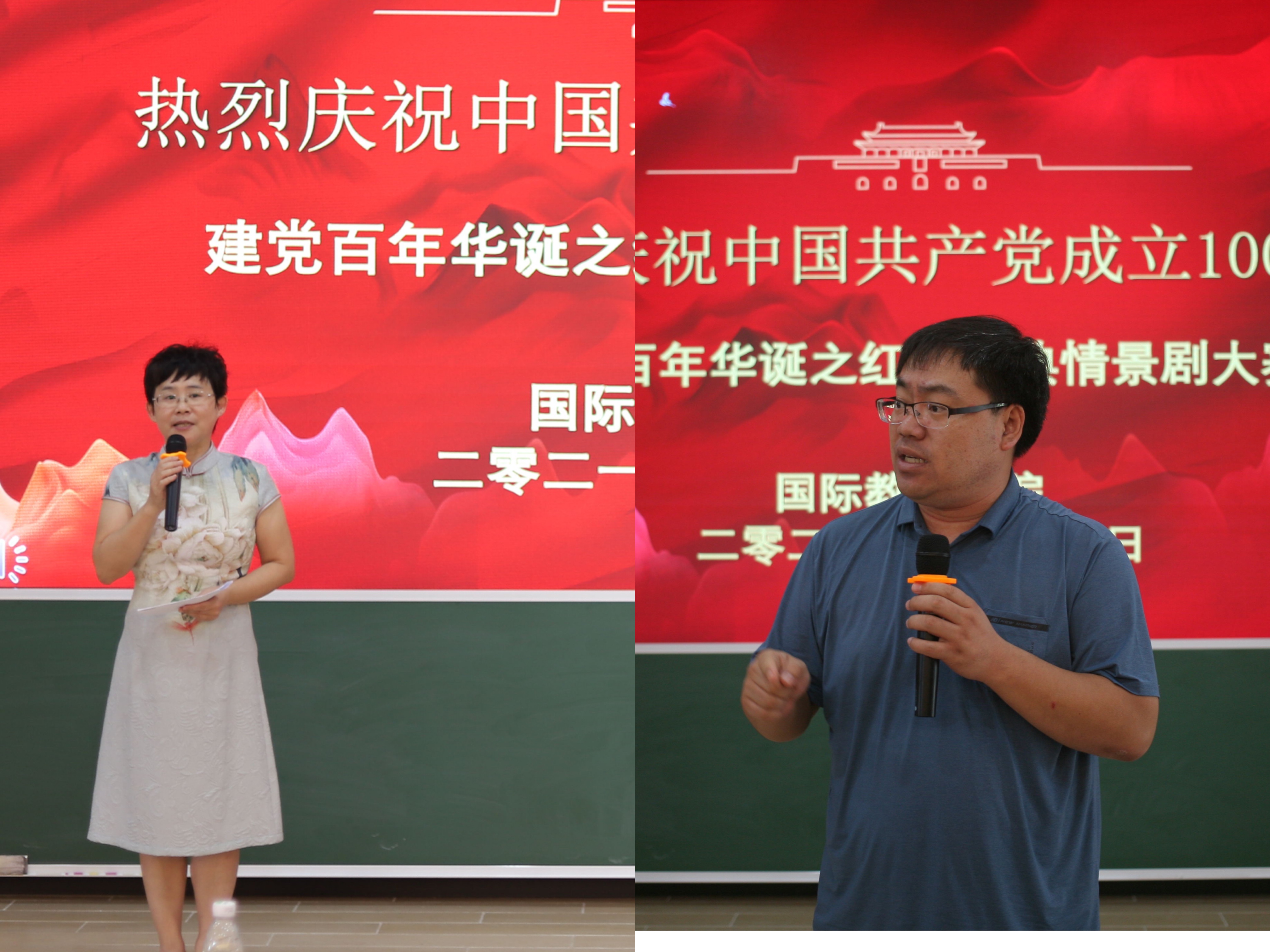 2021年4月20日,国际教育学院学生党支部“感悟百年党史,同心筑梦未来”党史学习教育系列活动之“建党百年华诞之红色经典情景剧大赛”在1-421成功举办。国际教育学院党总支书记于勇、院长张春玲、副院长黎瑛、副院长韩大伟,学工办和教务办全体老师和各班级班主任作为嘉宾和评委参加了本次活动,全体党员、入党积极分子和团学干部在现场观摩。