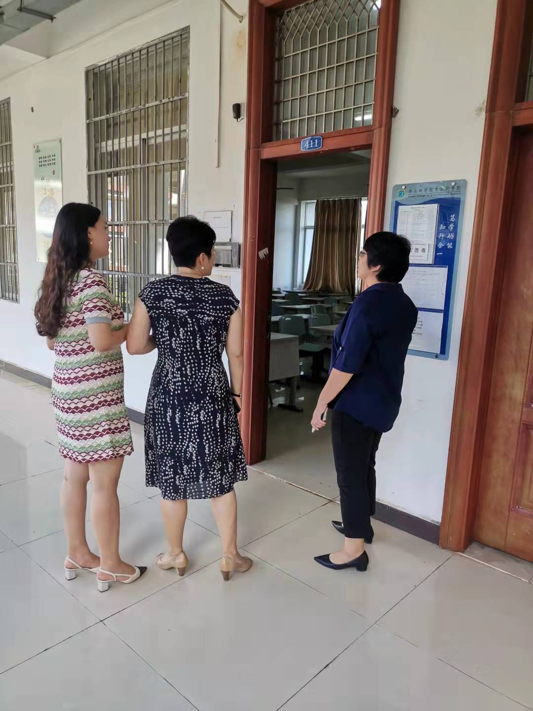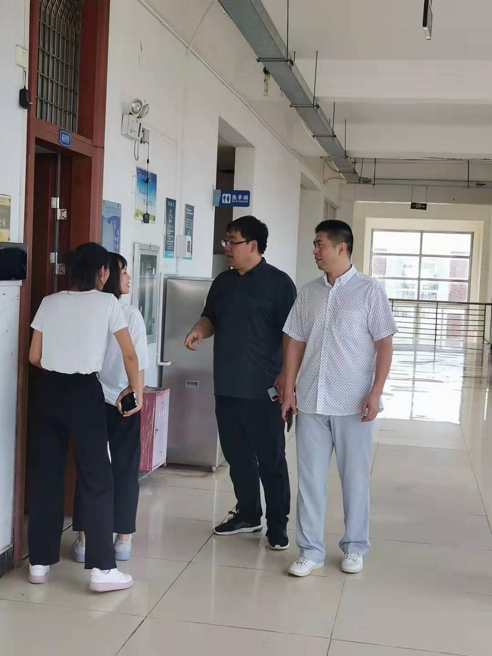 领导们首先从第一教学楼4楼开始巡查开学第一天上课情况。在检查过程中,根据课表仔细检查上课时间、地点、教师及到课学生数,巡视了师生开学初的精神风貌、教学设备及教学环境等情况。