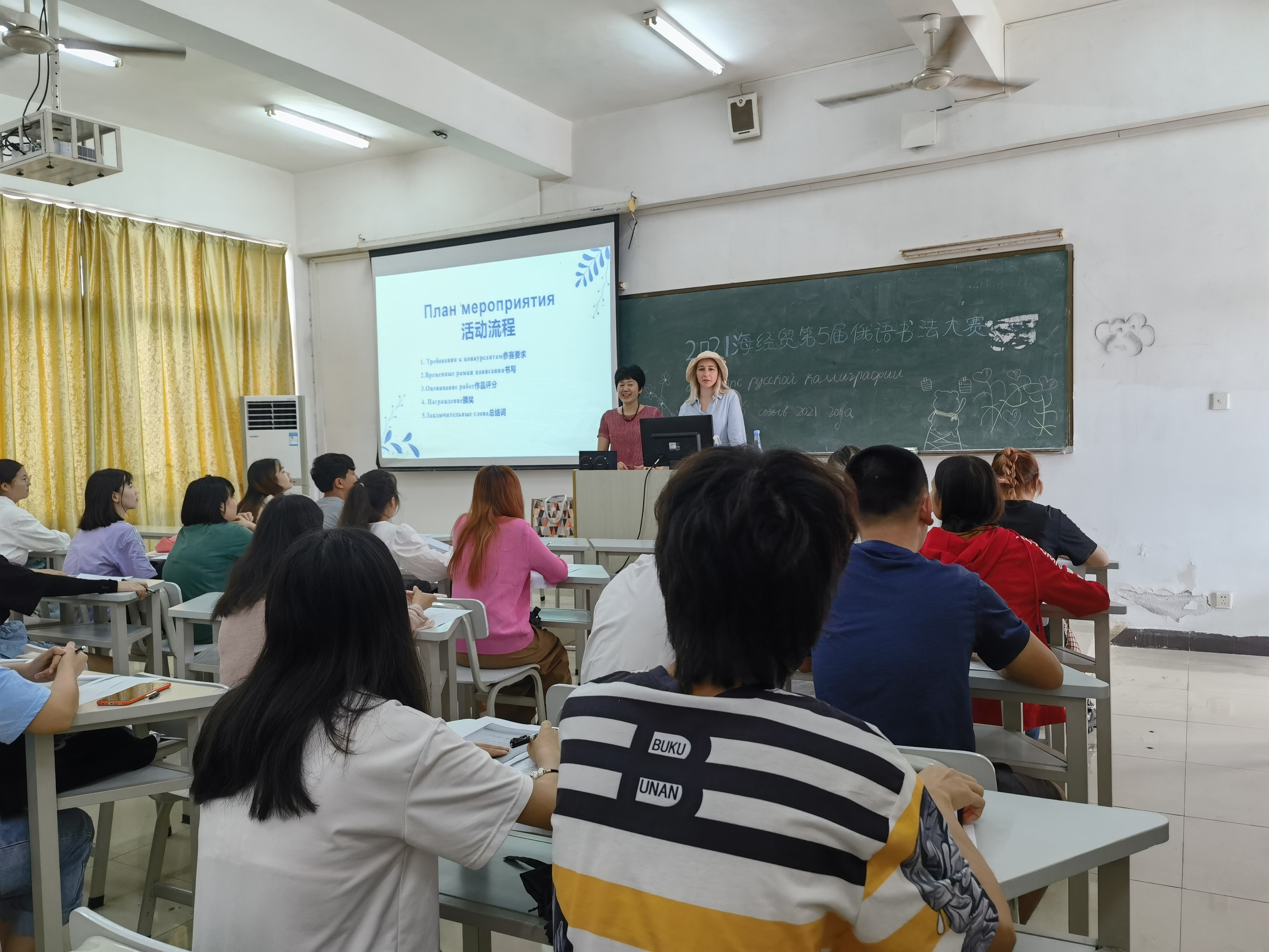 2021年4月13日下午,我校第6届俄语书法大赛在第一教学楼609教室正式举行。应用俄语教研室所有中外教师担任评委,此次参赛人数达90人。