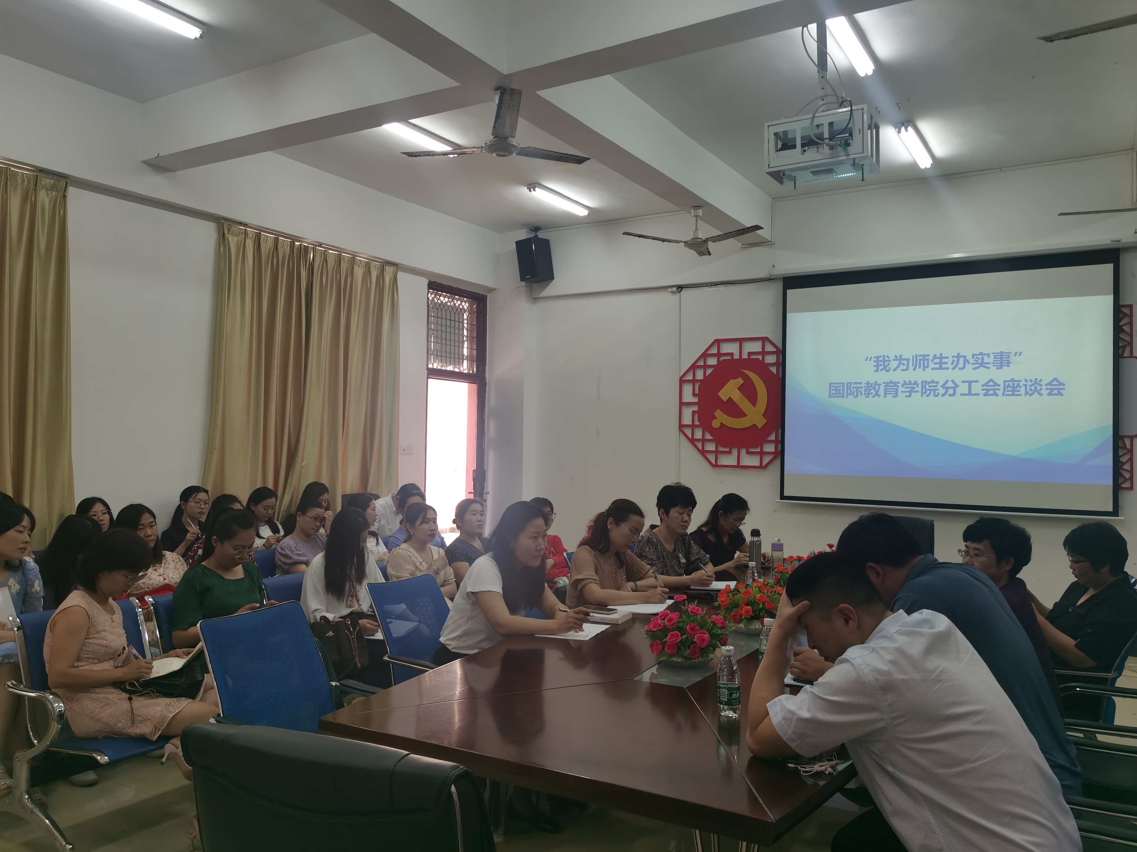 于勇书记首先指出学院领导和学院分工会高度关心、重视我院教职工的发展,努力为广大师生创造好的条件,本次座谈会目的是切实为师生办实事、办好事、办身边事,不断提升我院广大师生的获得感、幸福感、安全感。到会教师代表纷纷发言,就教室设备、饮水问题、师生交流困难、学生宿舍、教师休息室等实际问题提出了意见建议。国际教育学院四位领导认真听取了教职工代表和学生代表提出的意见建议,就如何开展好国际教育学院党史学习教育和推进“我为师生办实事”提出了具体要求。