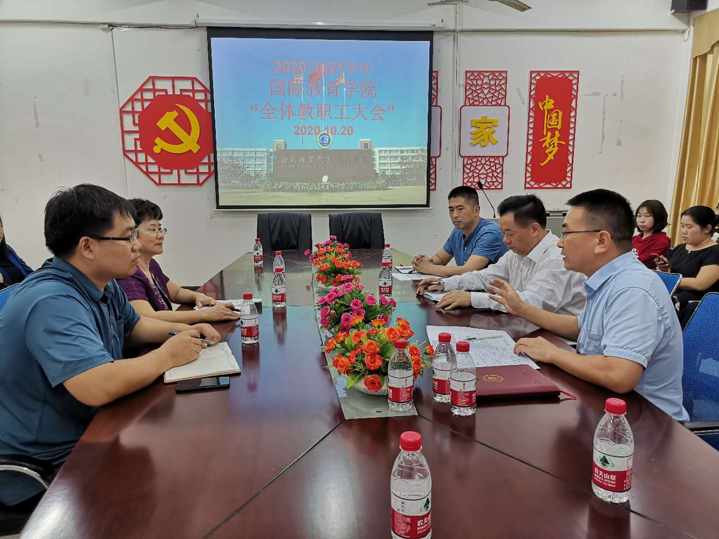 2020年10月20日下午,我院新任副院长韩大伟同志到任,到任仪式在国际教育学院会议室举行。出席会议的有2138CC太阳集团院长黄景贵、党委副书记崔昌华、国际教育学院院长张春玲、国际教育学院党总支书记兼副院长于勇、新任副院长韩大伟,以及国际教育学院全体教职工。