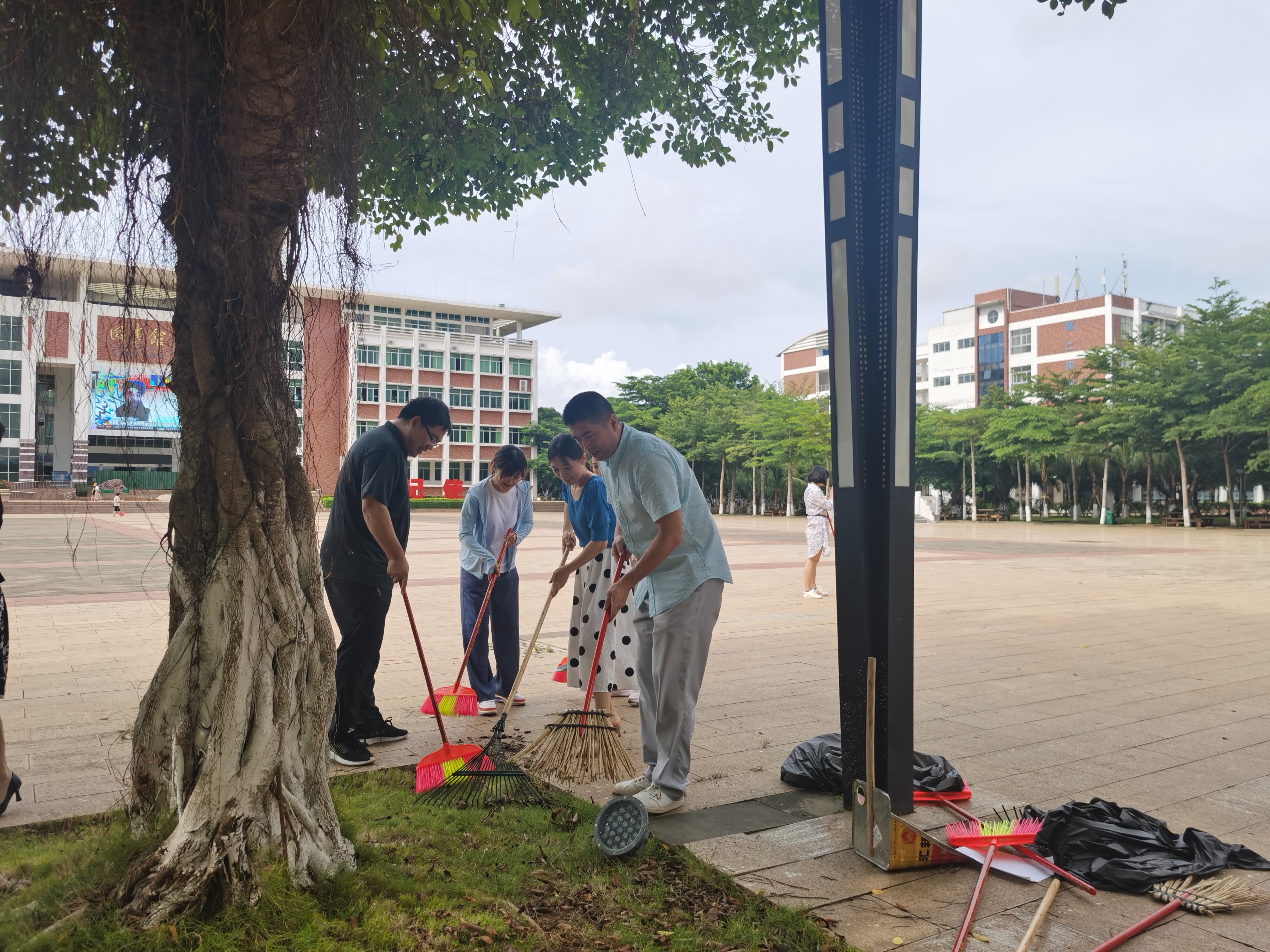 9月1日下午,国际教育学院、乌拉尔学院于经贸广场开展卫生大扫除活动。国际教育学院于勇书记、张春玲院长、黎瑛副院长、韩大伟副院长以及乌拉尔学院党总支副书记蔡家瑶、周丽霞副院长亲临现场,与全体教辅人员及任课教师一起参加了此次大扫除,为新学期给师生提供一个安全、卫生、舒适、整洁的校园环境助力加油。
