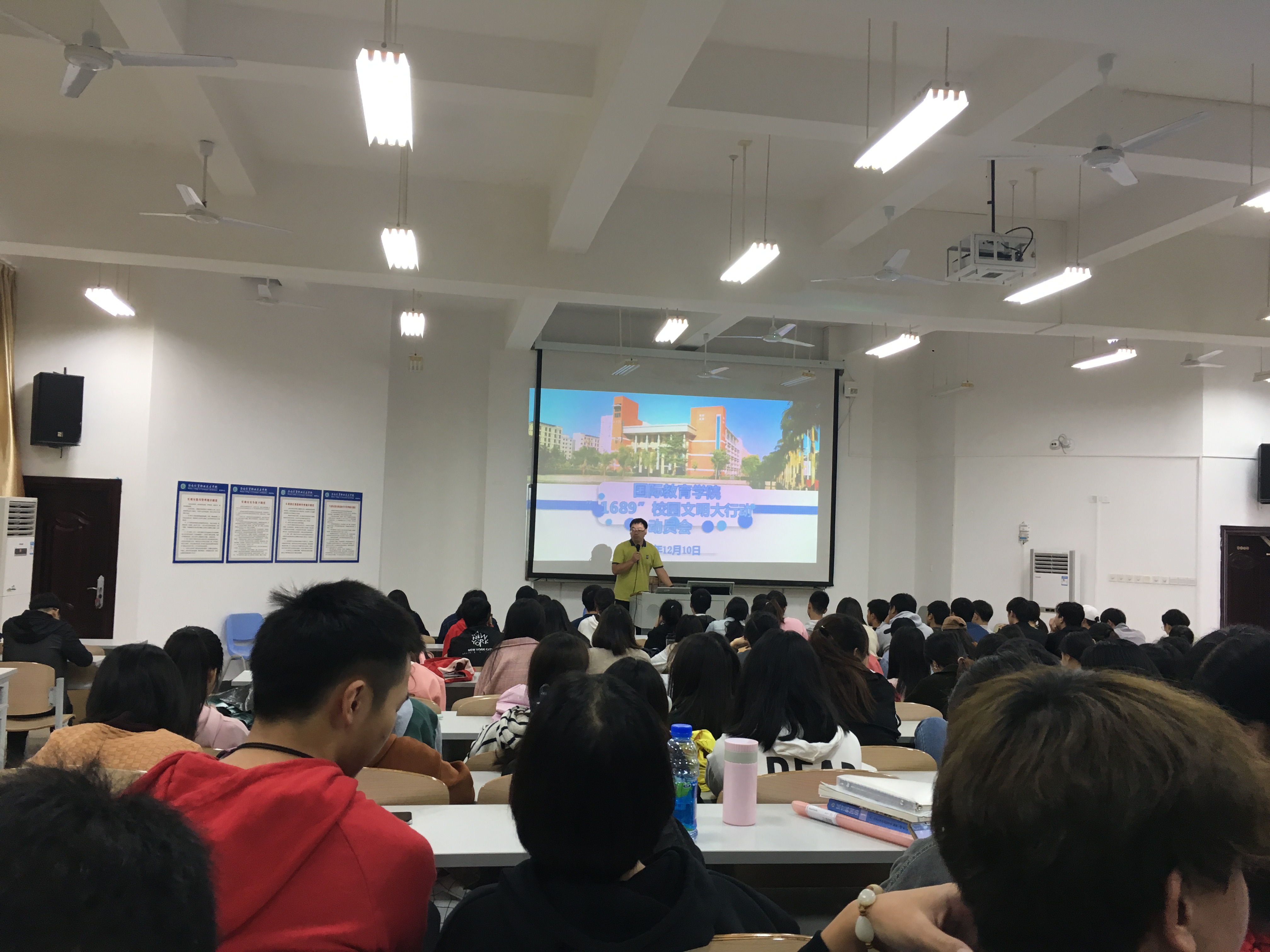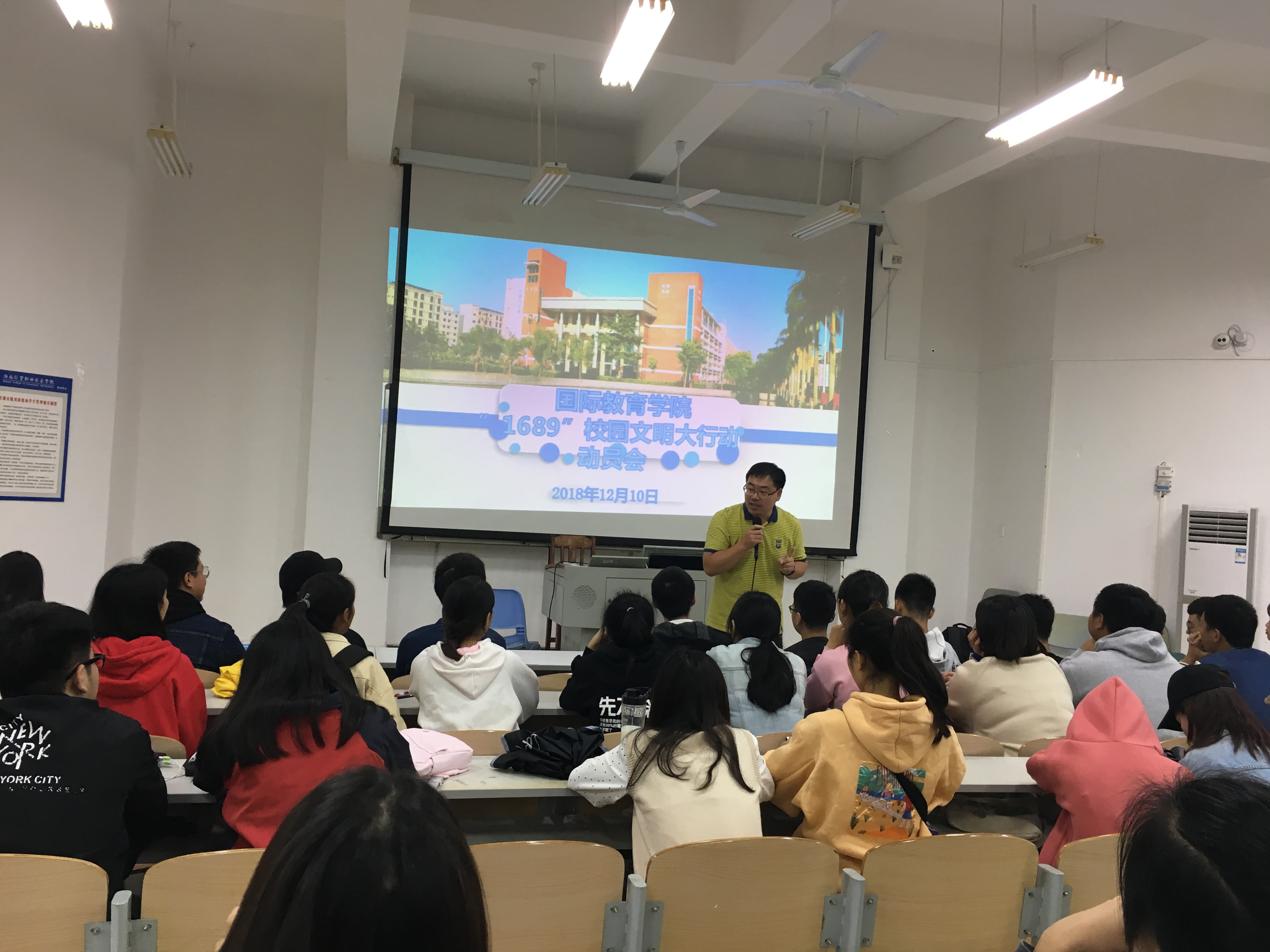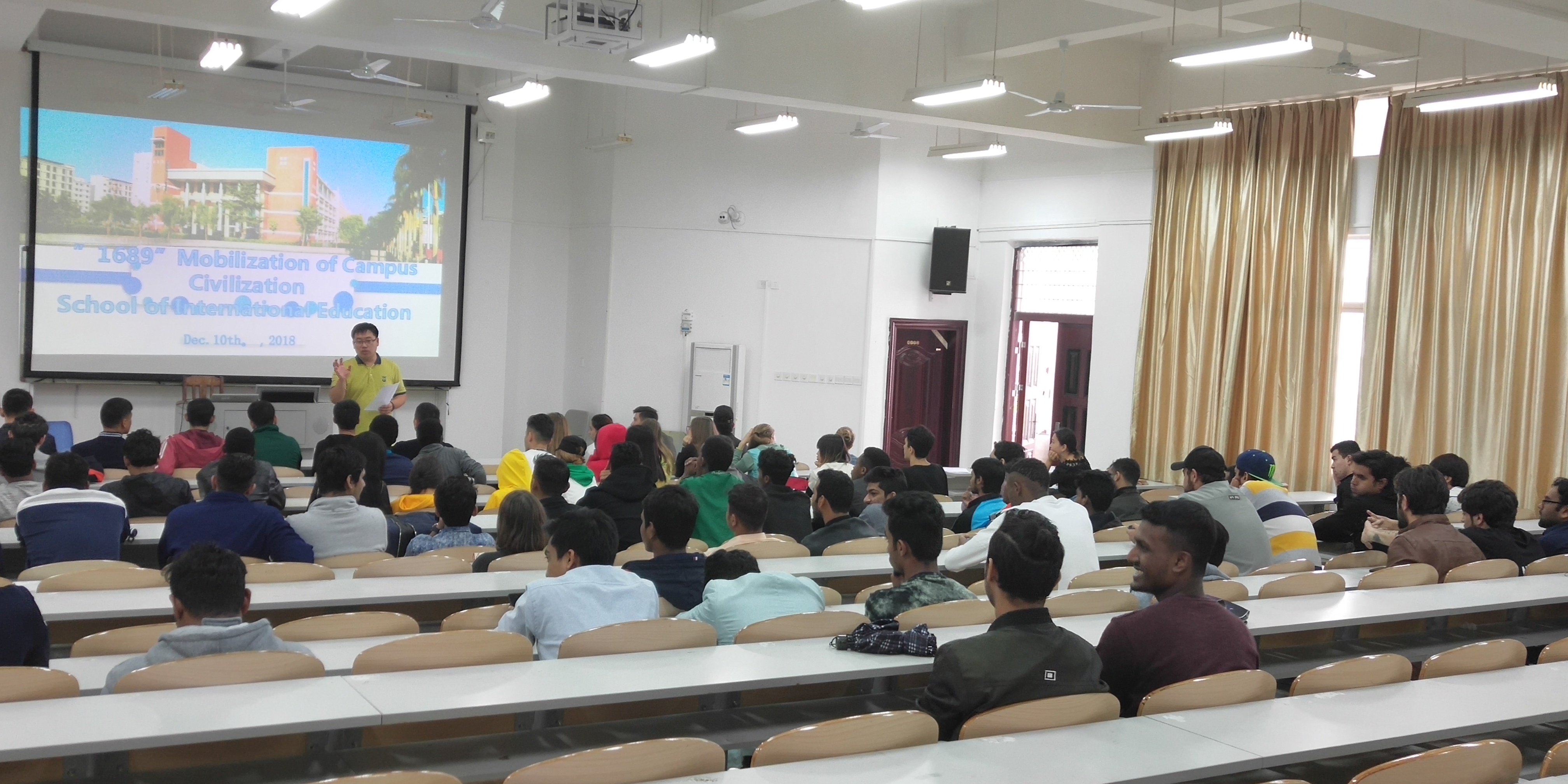 为响应学校“1689”校园文明大行动工作要求,国际教育学院对“星级宿舍”评选工作高度重视、广泛宣传,并于12月10日中午在1-421召开“1689”校园文明大行动动员会,全体辅导员、团学干部、留学生、18级学生、17级全体班委和宿舍代表参加本次动员大会。